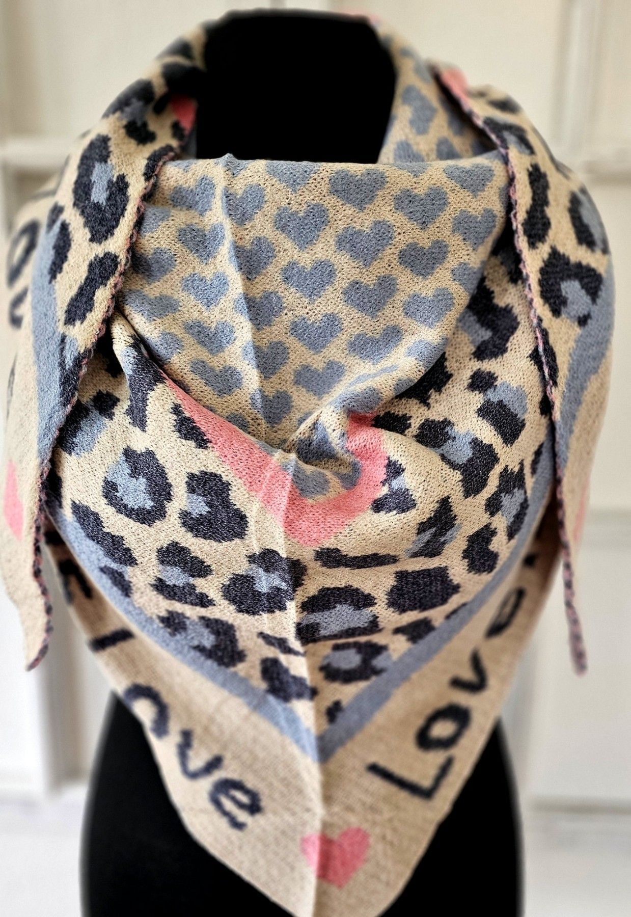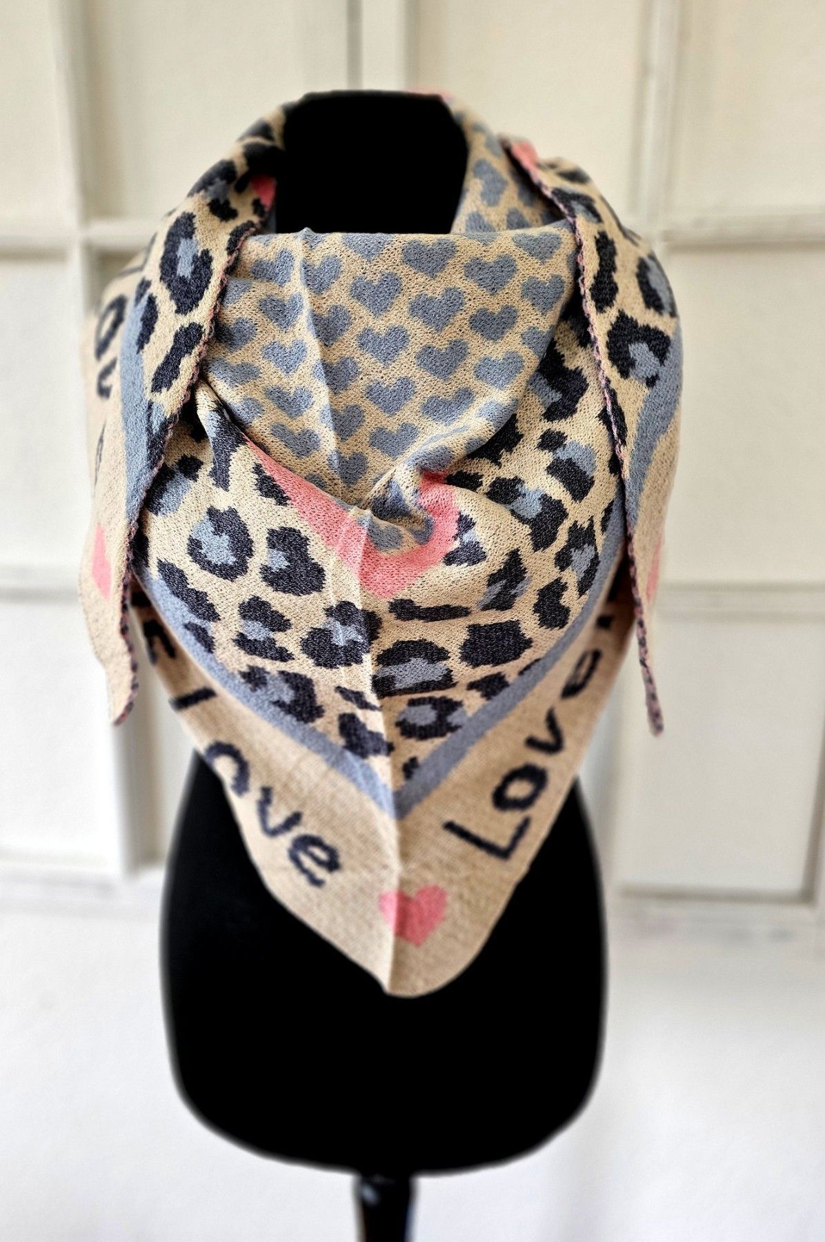 Blogger XXL Dreieckstuch Halstuch Schal mit Kaschmir Animal/Herzen Hellblau/Rosa/Beige