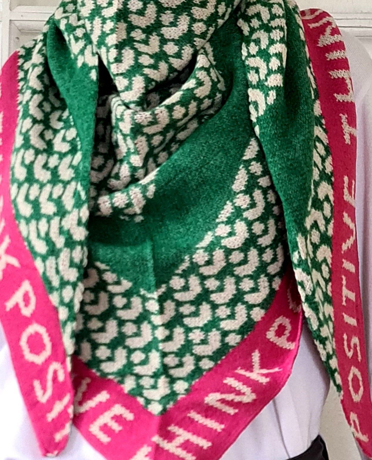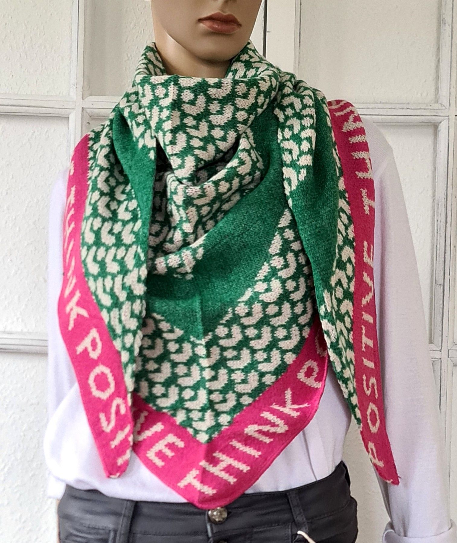 Blogger XXL Dreieckstuch Halstuch Schal Viskose Animal/Schriftzug Pink Grün Weiß