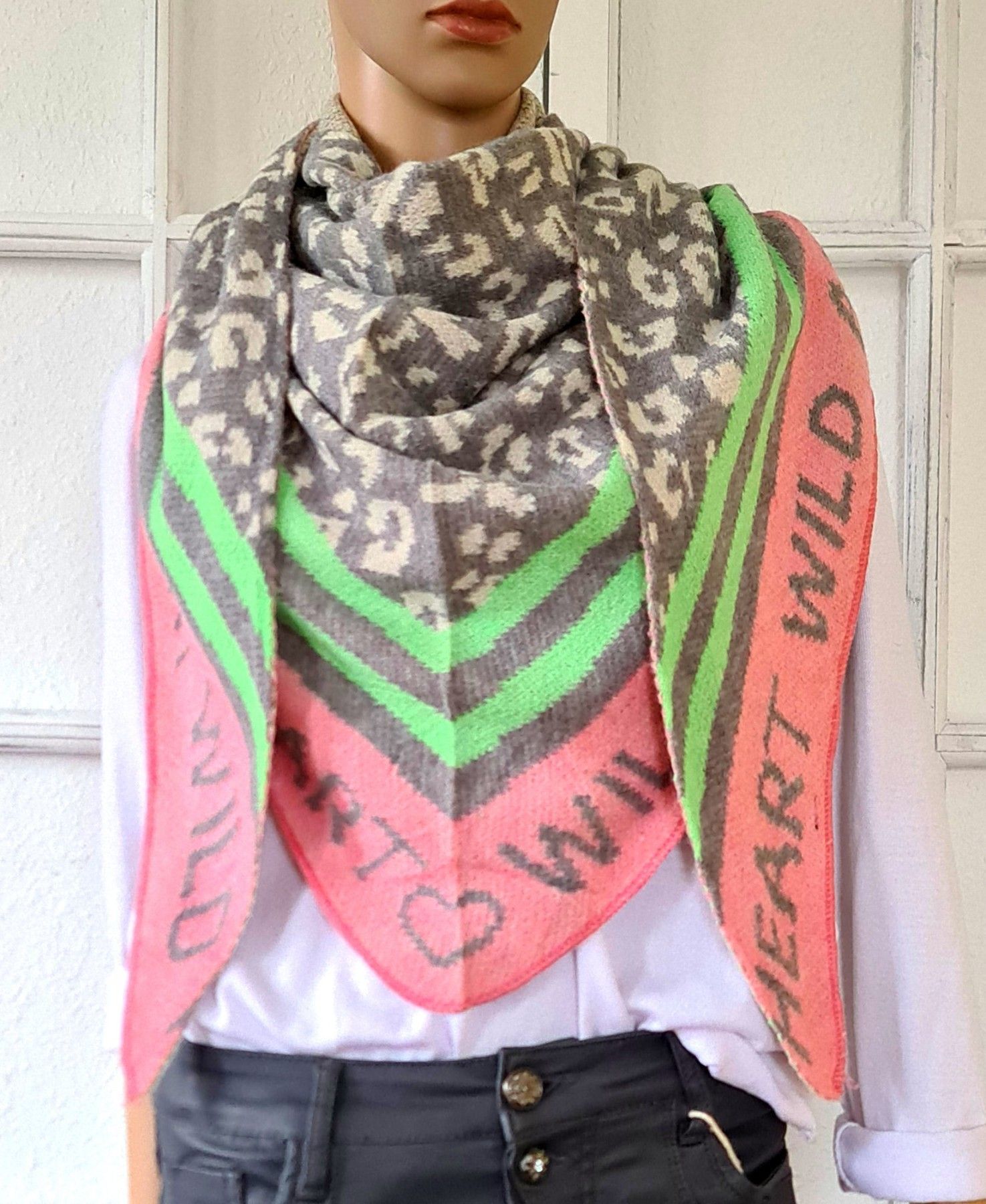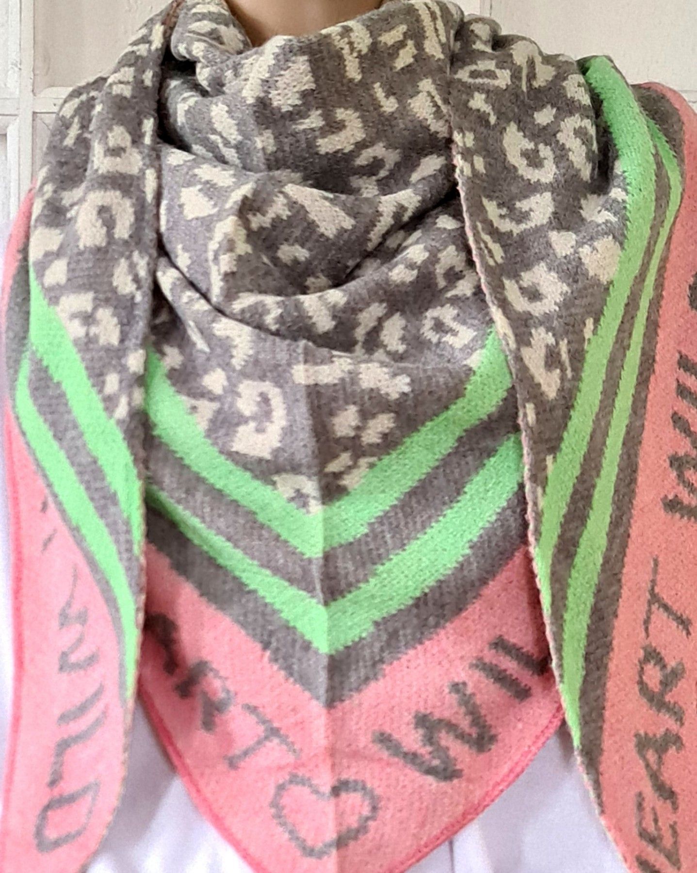Blogger XXL Dreieckstuch Halstuch Schal Viskose Animal/Schriftzug Rosa Grau Lachs