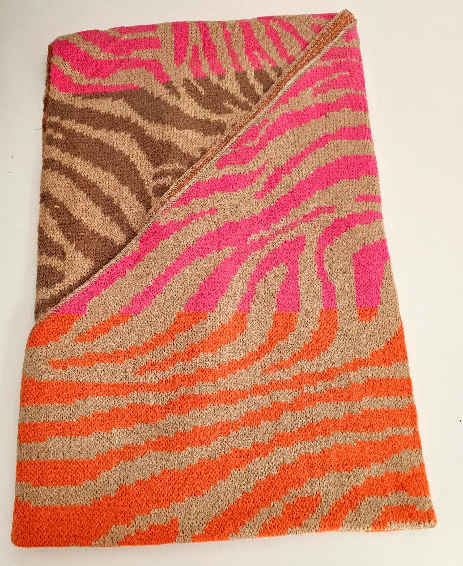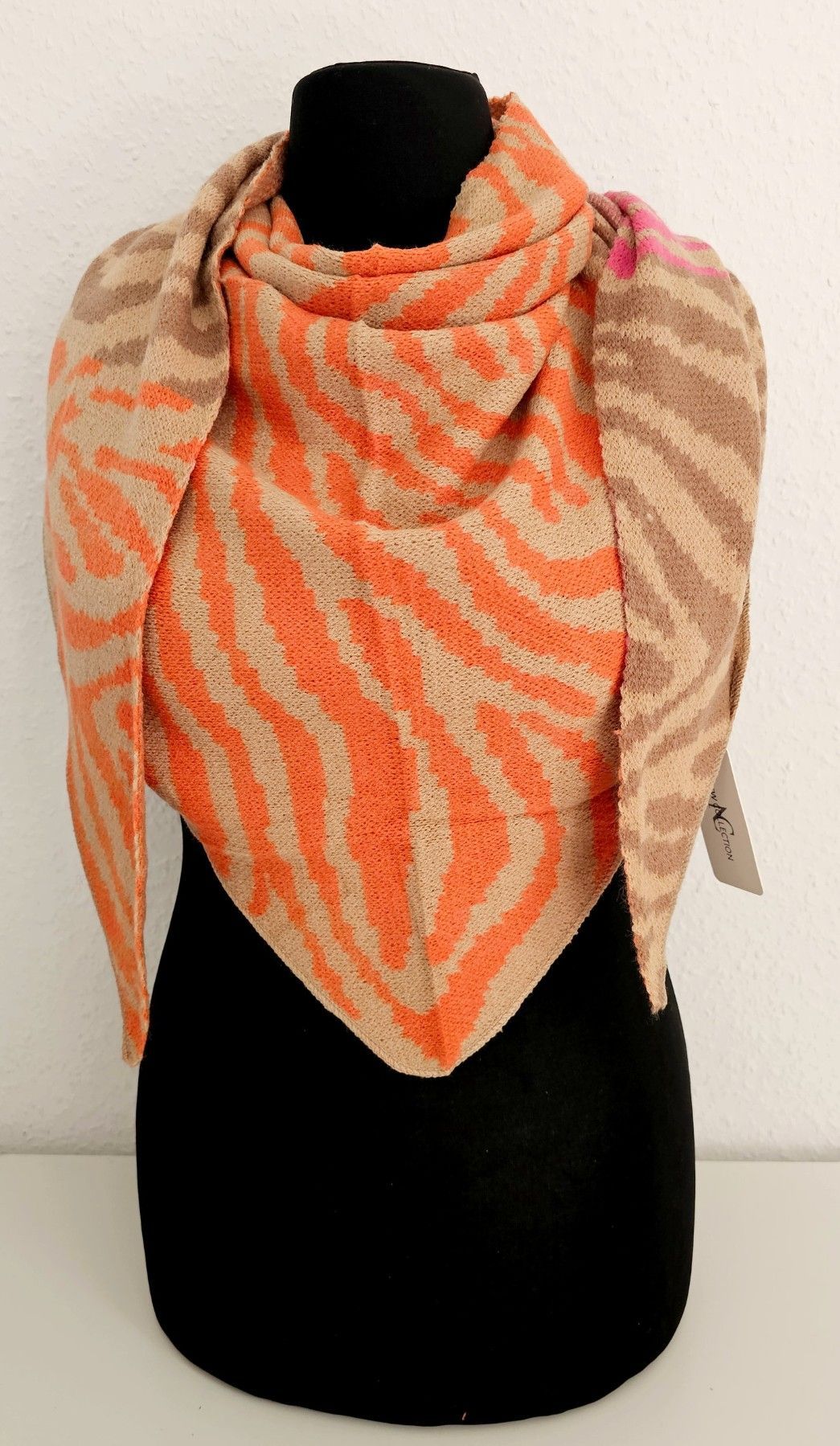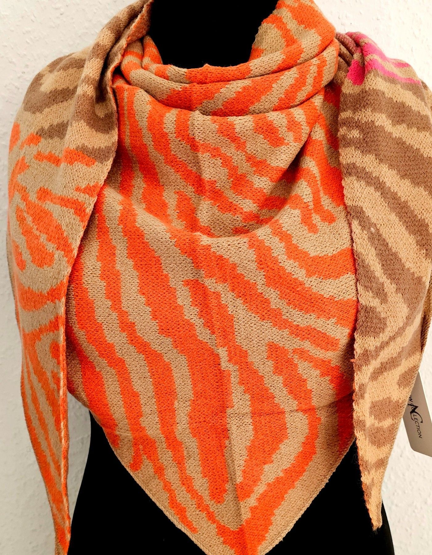 Blogger XXL Dreieckstuch Tuch Dreieckschal Kaschmir Streifenprint Orange/Pink/Taupe