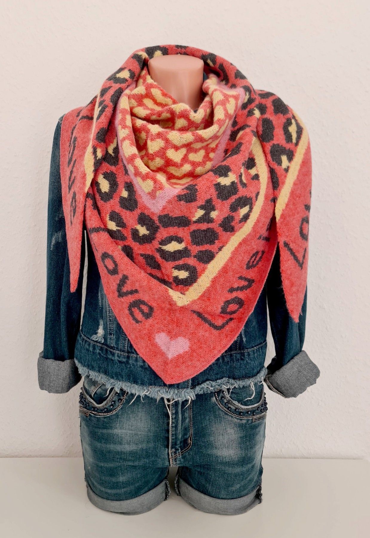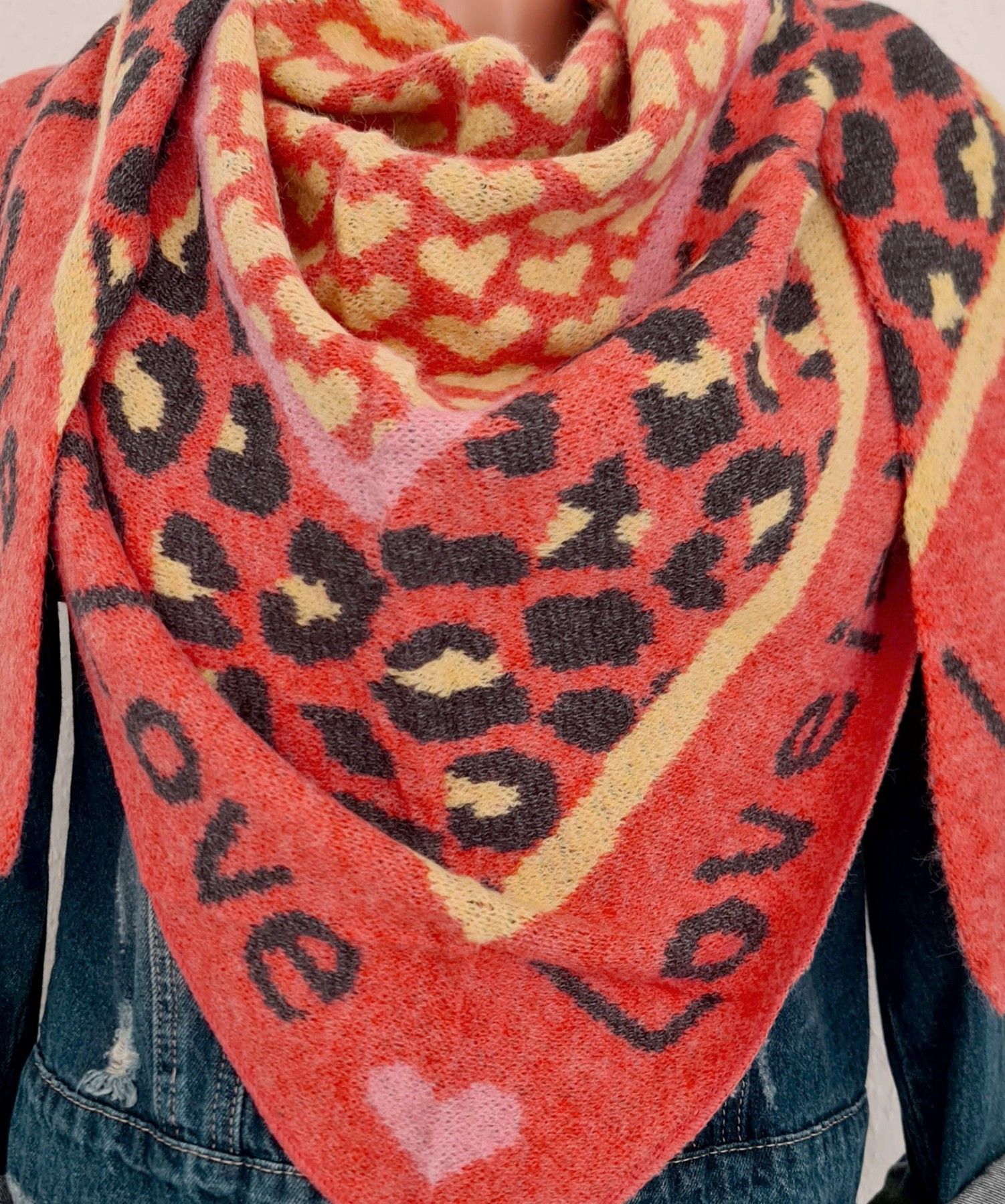 Blogger XXL Dreieckstuch Tuch Schal Viskose/ Wolle Animal/Herzen LOVE Lachs/Schwarz