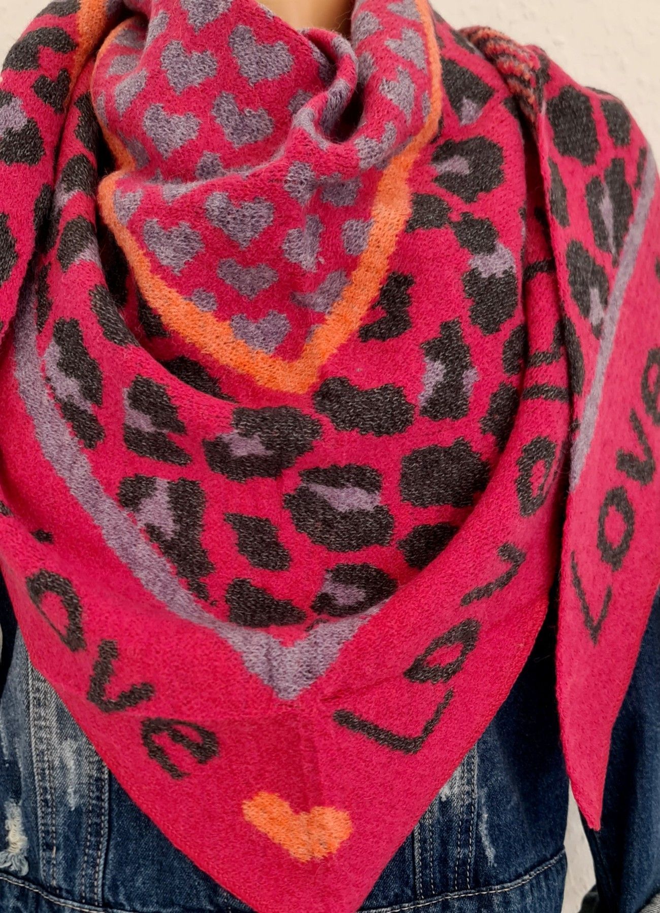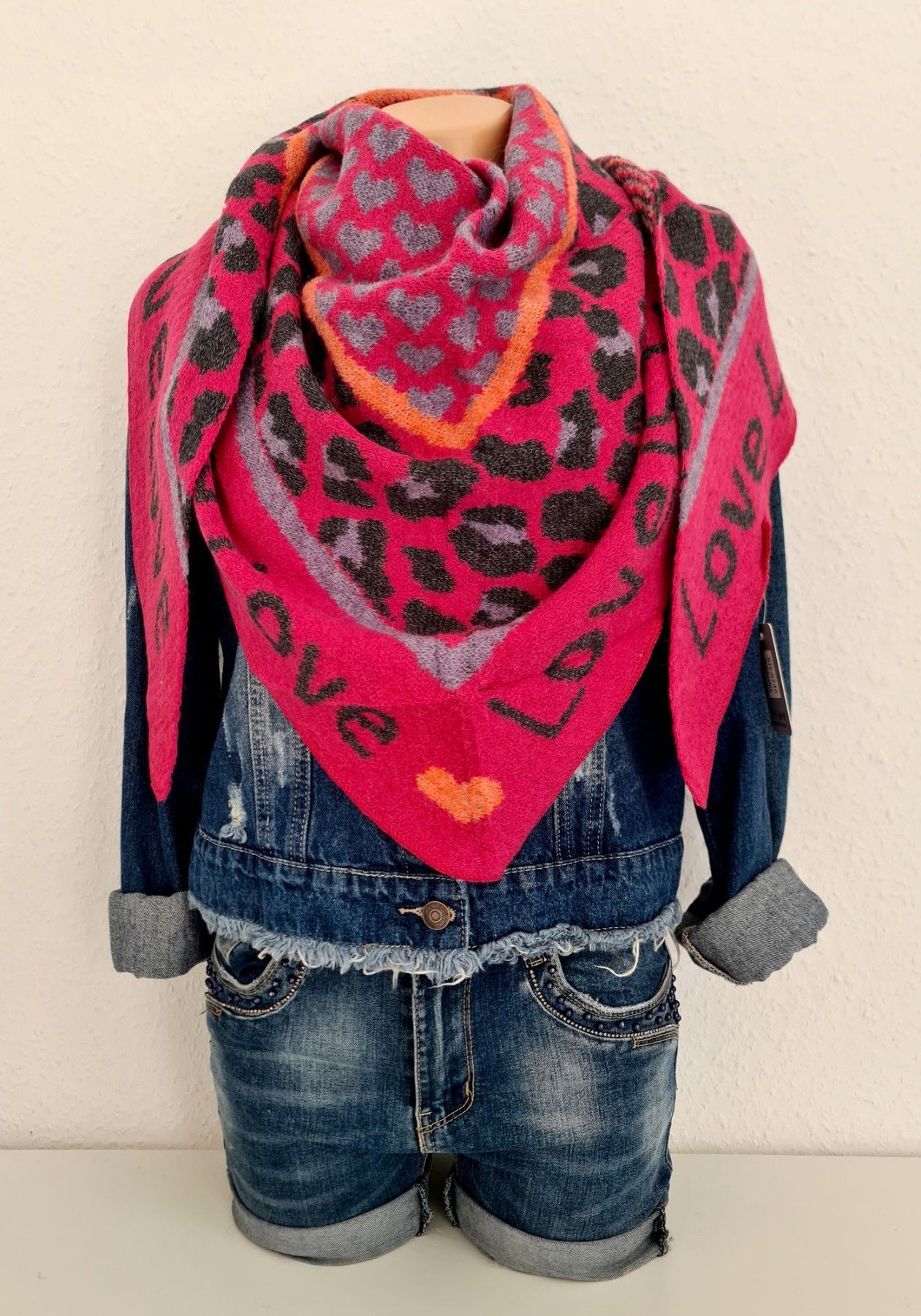 Blogger XXL Dreieckstuch Tuch Schal Viskose/ Wolle Animal/Herzen LOVE Pink Schwarz