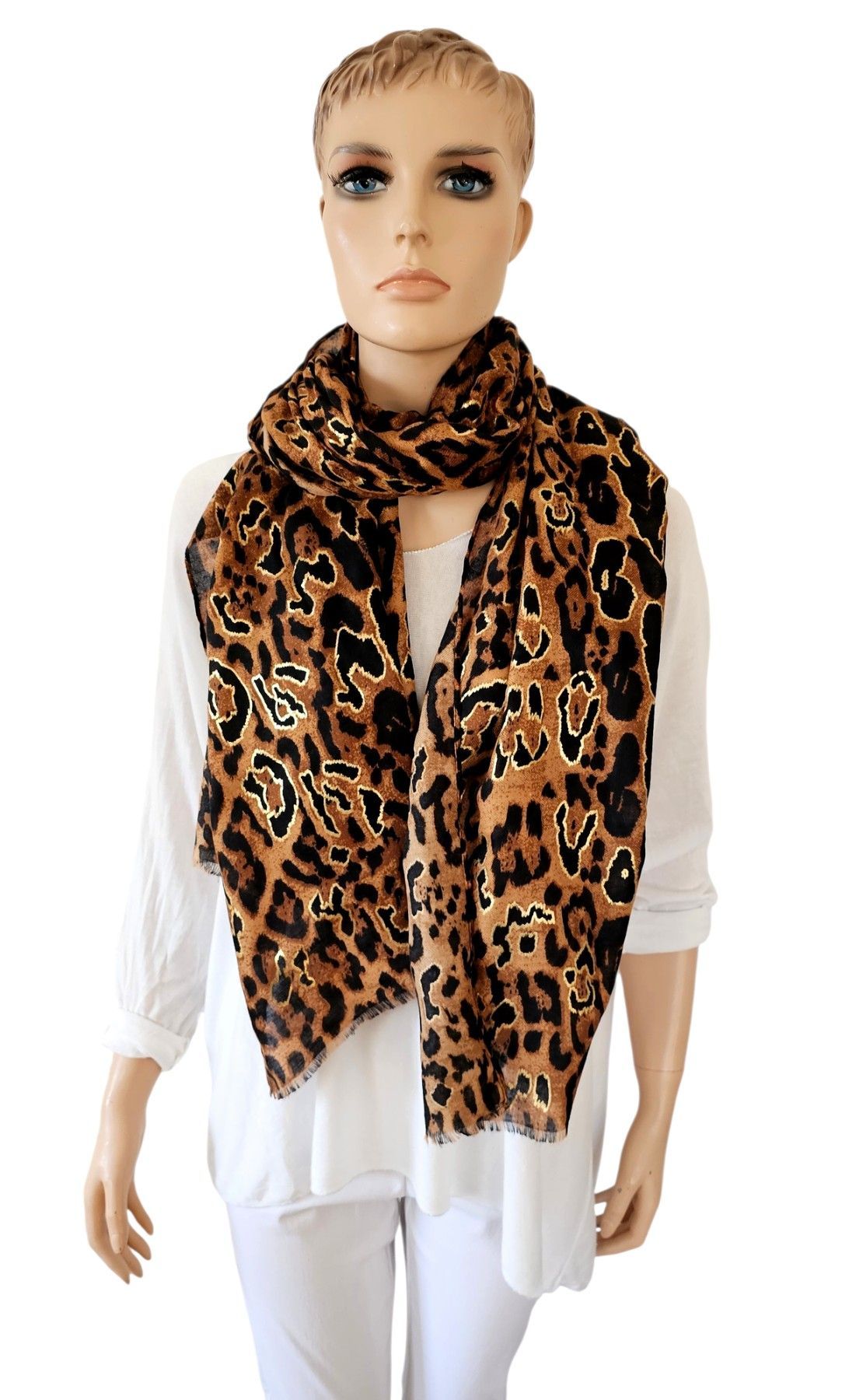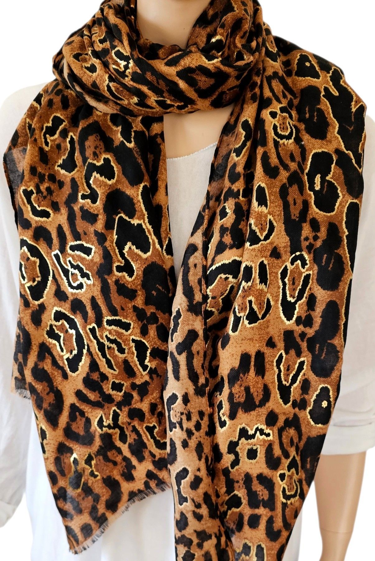 Blogger XXL Schal Tuch Halstuch Animalprint Leo Metallic Rand Braun/Schwarz/Gold
