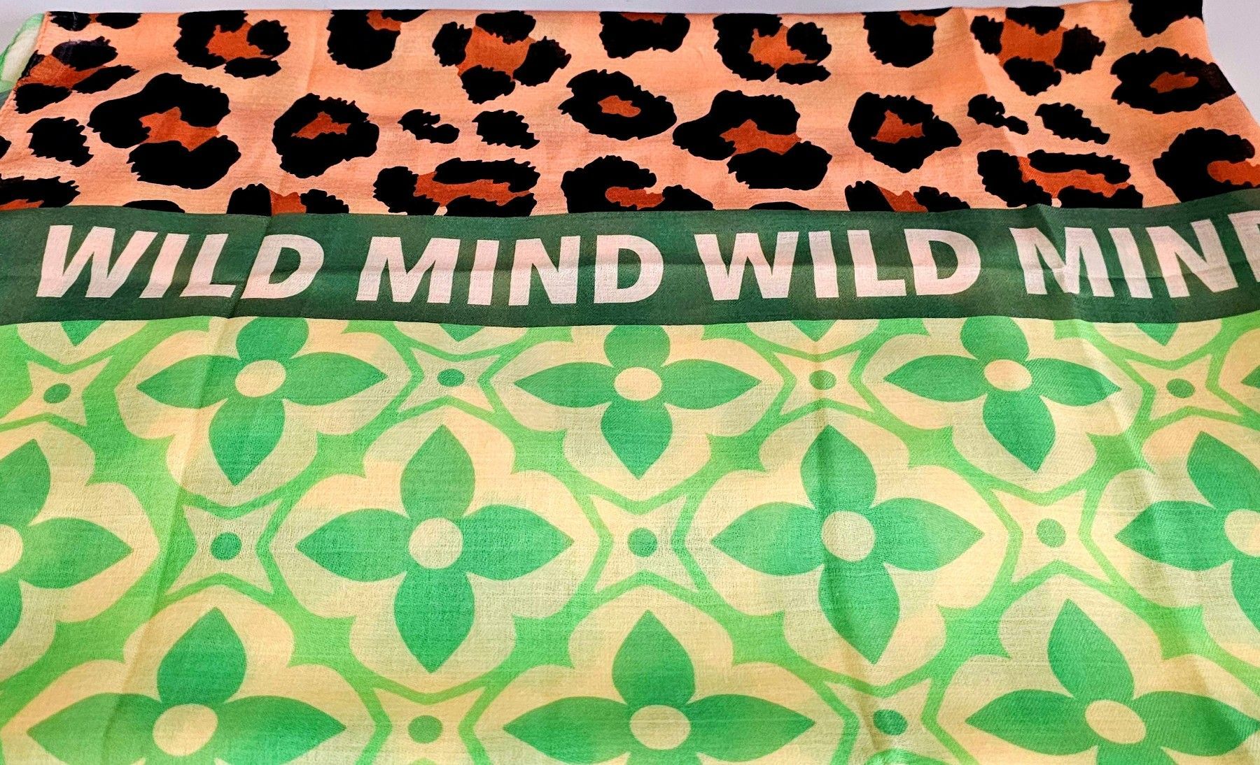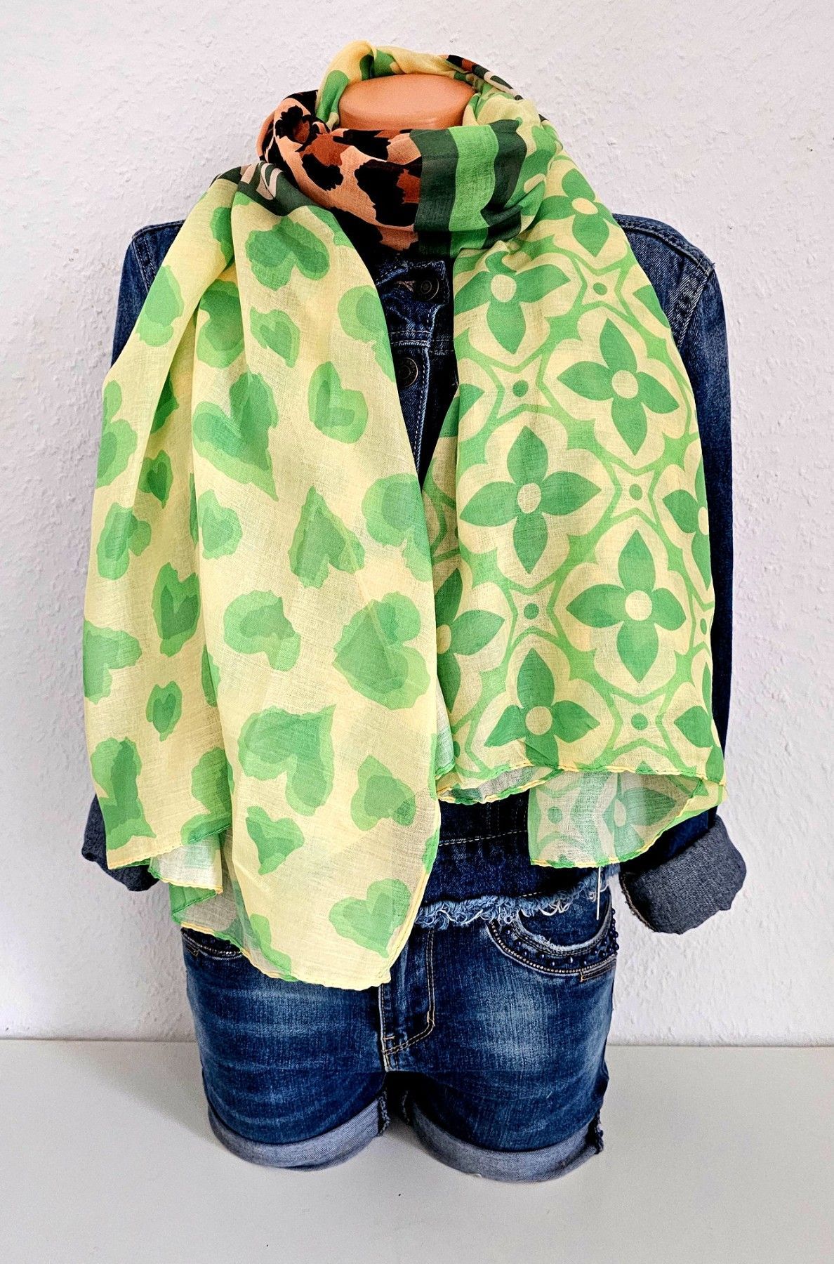 Blogger XXL Schal Tuch Halstuch WILD MIND Herz/Leo/Blüten Hellgrün/Gelb/Braun