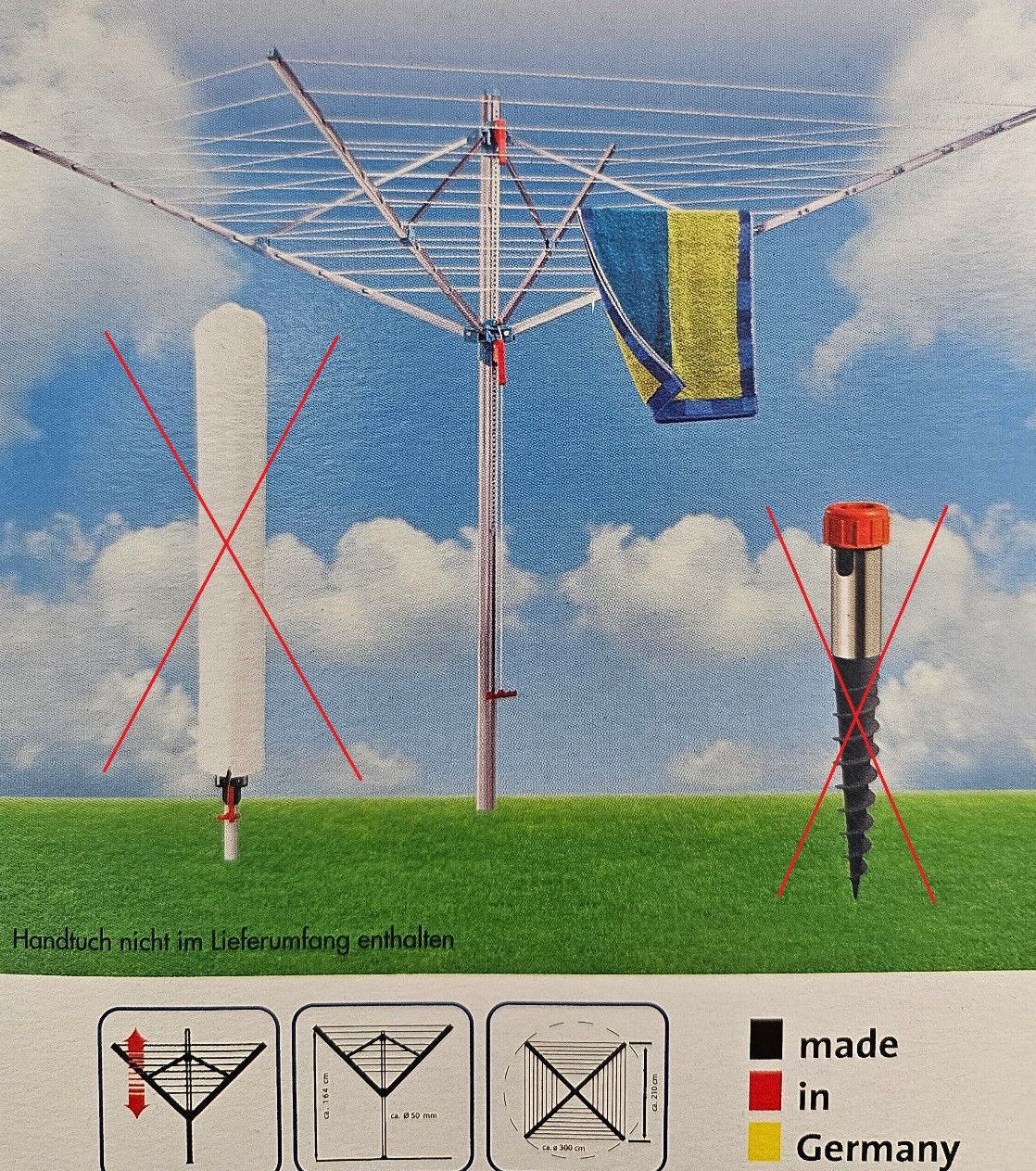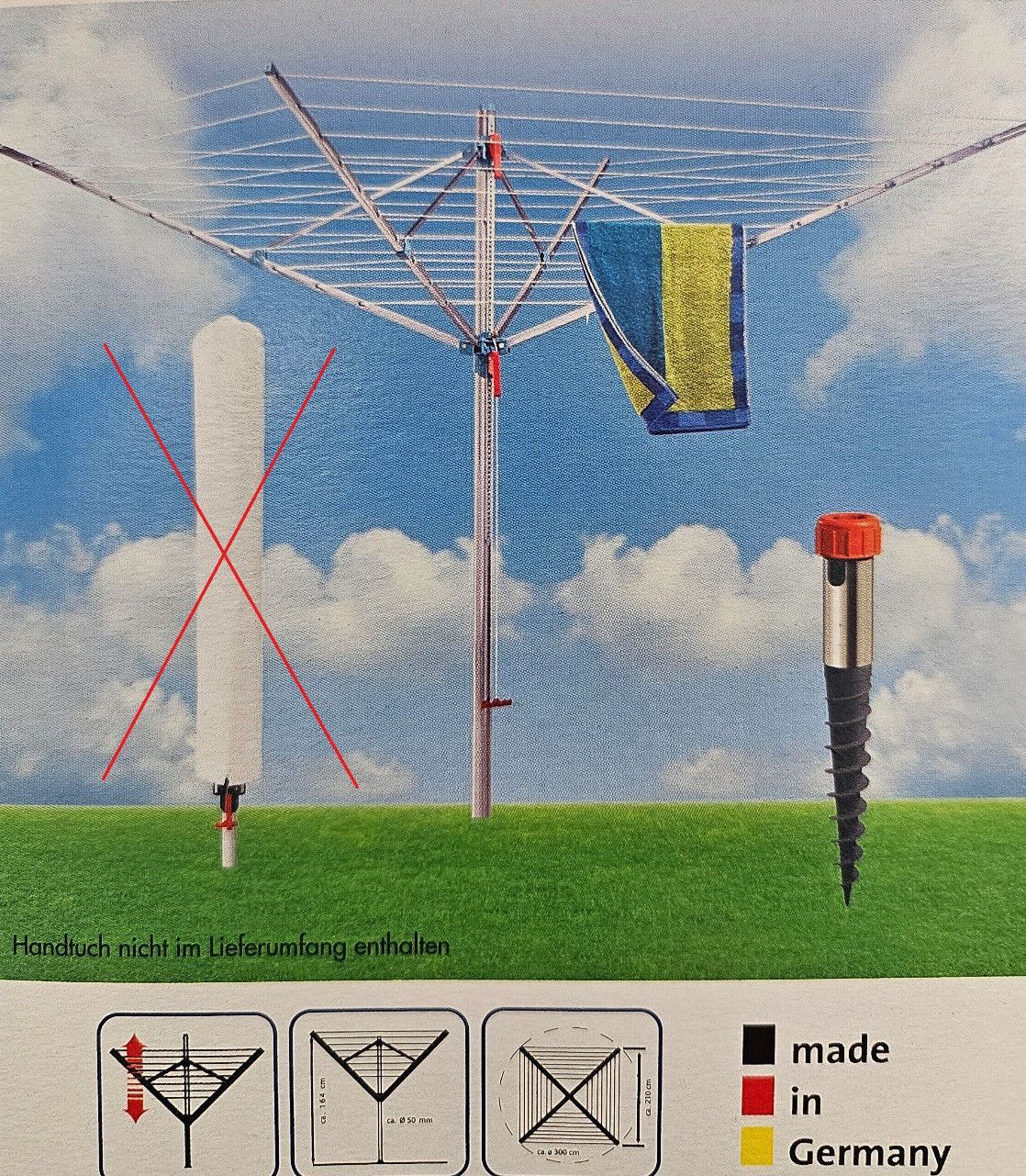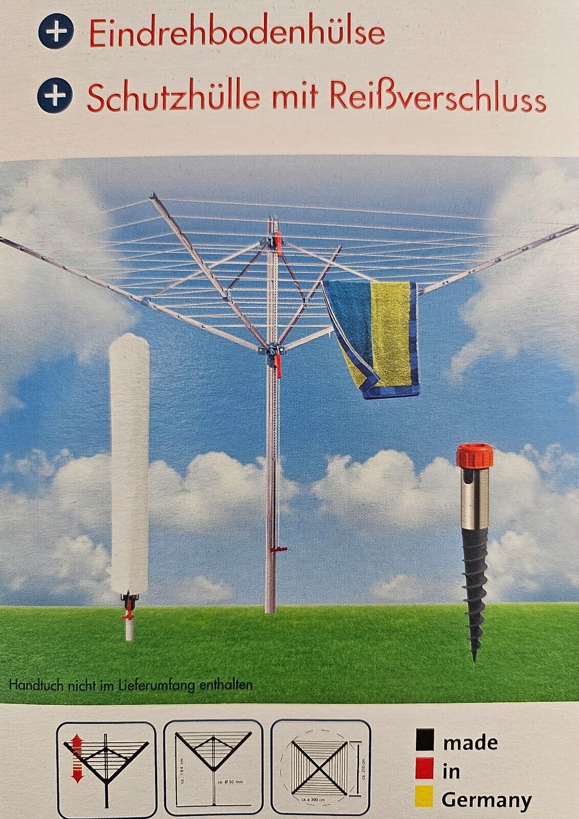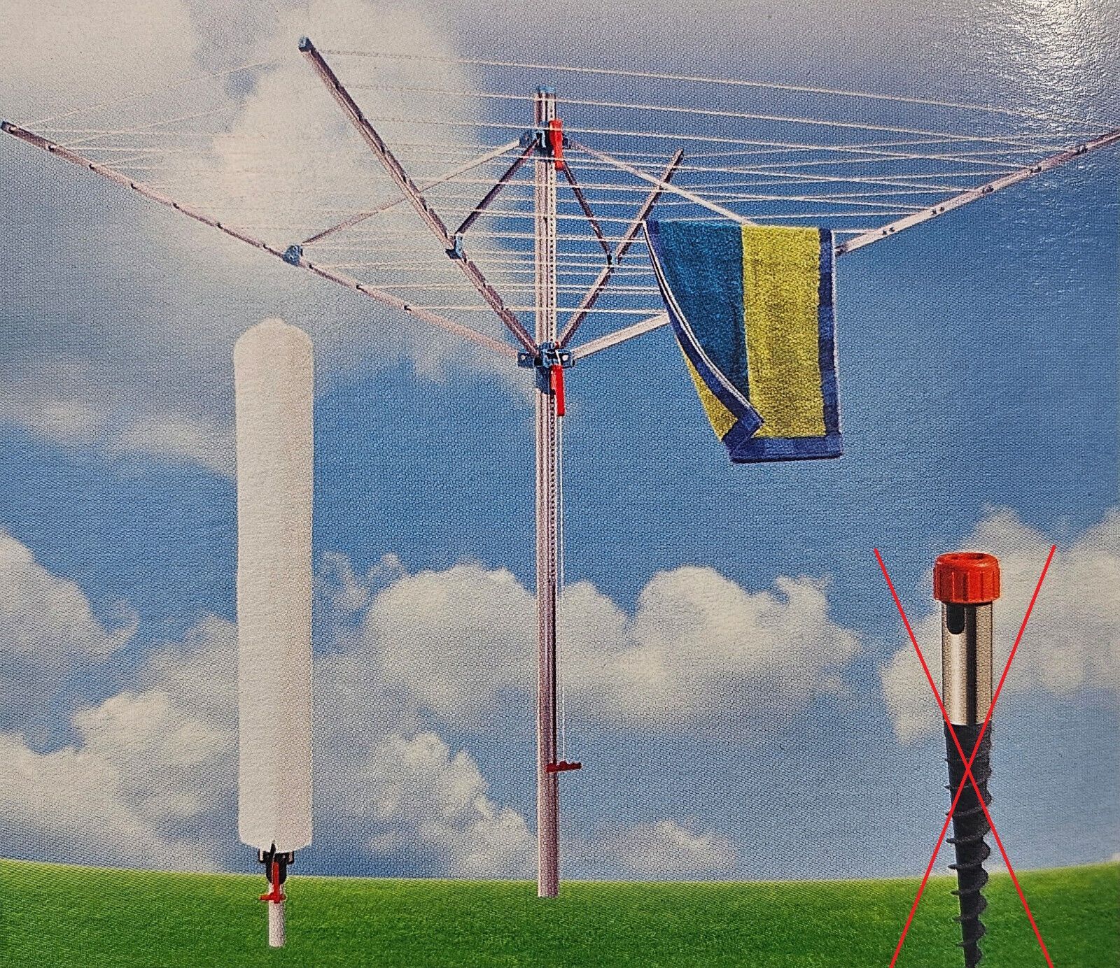 Wäschespinne + Erdhülse + Schutzhülle, Wäschespinne + Erdhülse, Wäschespinne + Schutzhülle, Wäschespinne, Erdhülse zum Eindrehen