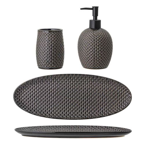 Bloomingville Bloomingville 82049295 Seifenspender-Set Hrin, Grau, Steingut