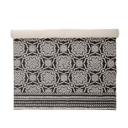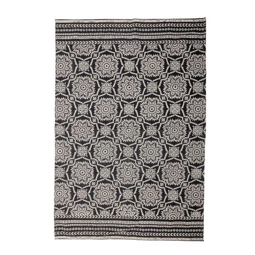 Bloomingville Bloomingville 82050946 Schwarzer Teppich Aco mit floralen Motiven aus Baumwolle