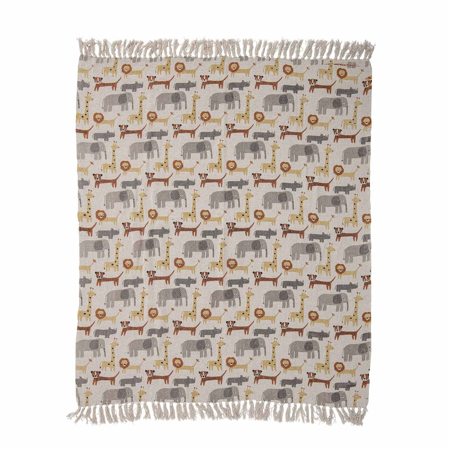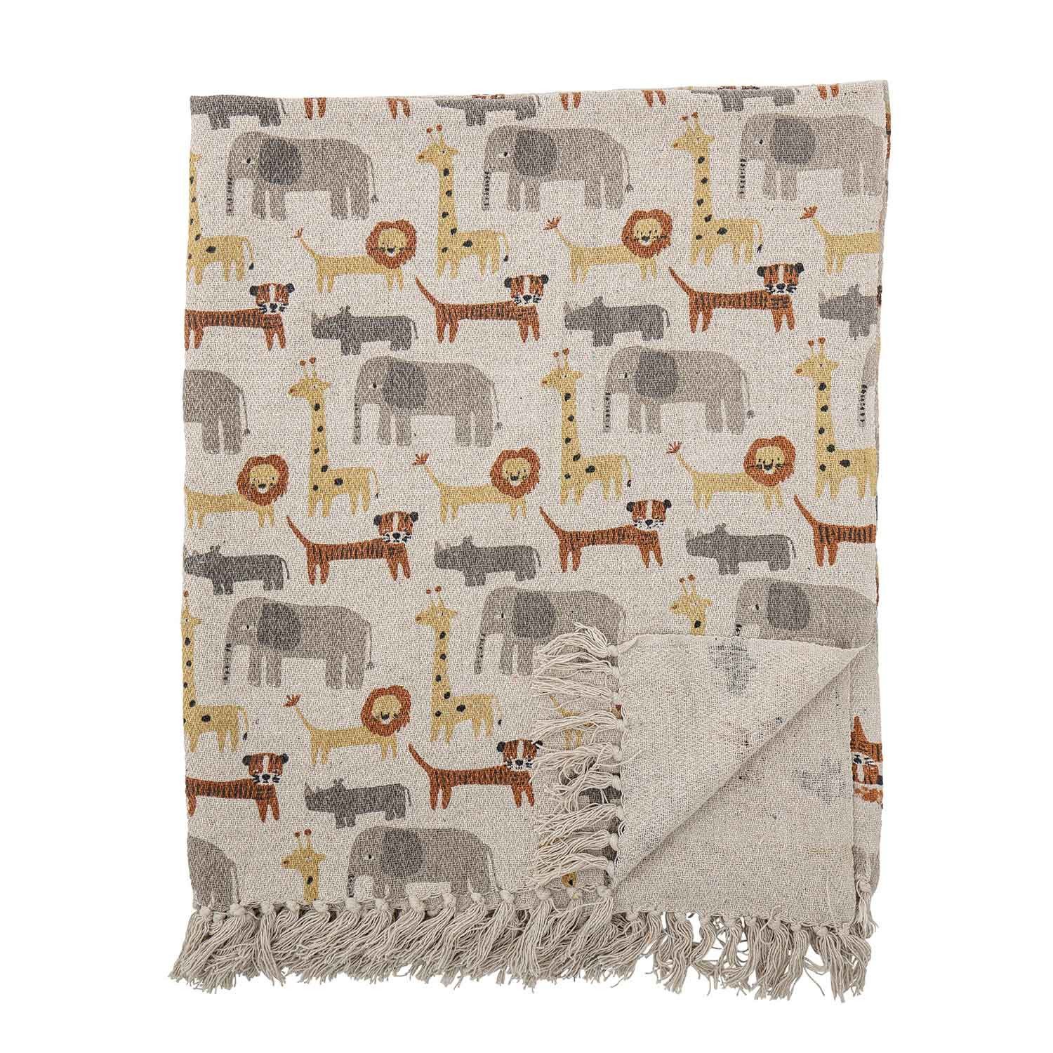 Bloomingville Bloomingville 82052381 Tagesdecke Überwurf - Kinderzimmer Kuscheldecke Tiere