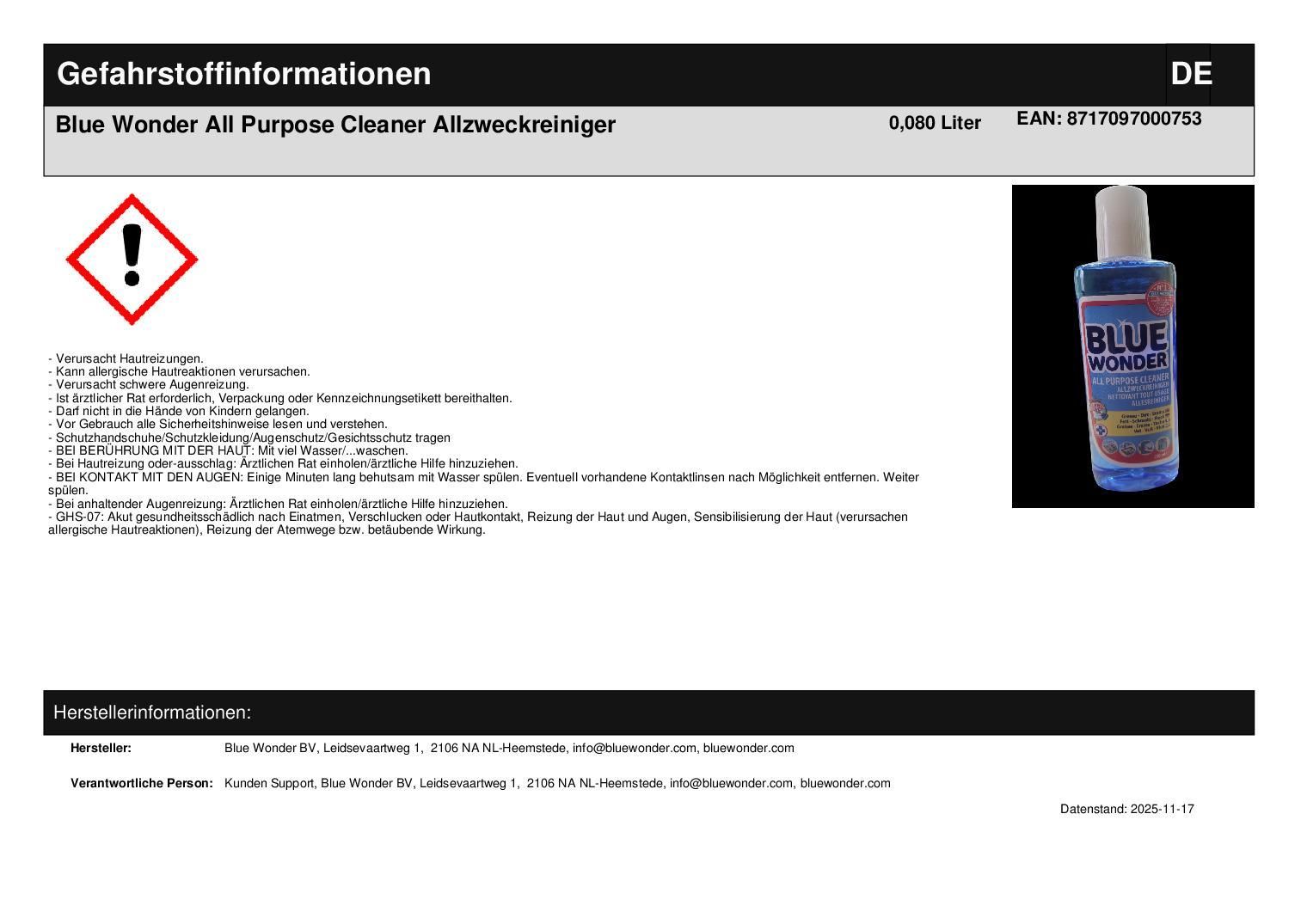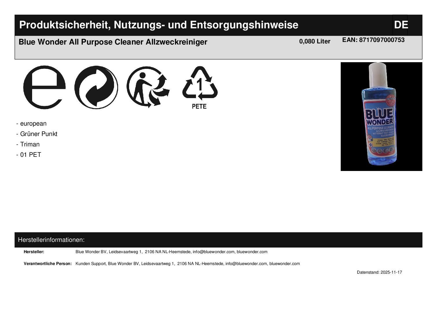 Blue Wonder All Purpose Cleaner Allzweckreiniger