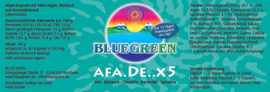 Bluegreen AFA. DE. X5 AFA-Bärlauch-Chlorella-Koriander-Spirulina 2x30g Doppelpack