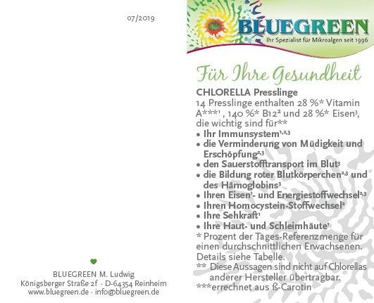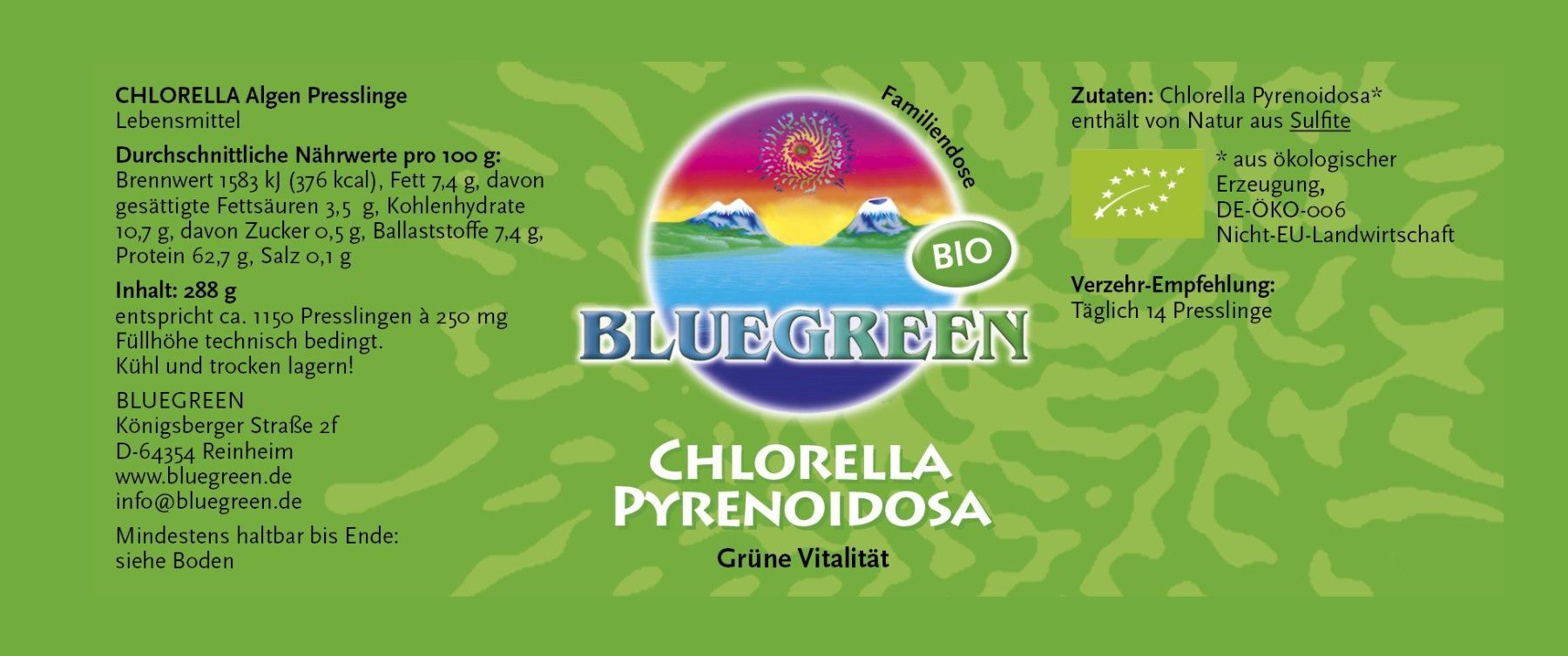 Bluegreen BIO Chlorella Presslinge 288g, ca.1150 Stück Familiendose