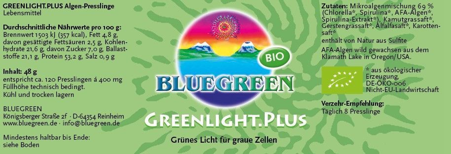 Bluegreen Greenlight. PLUS BIO Presslinge 48g, ca. 120 Stück