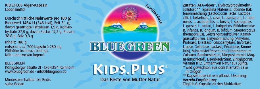 • Bluegreen KIDS. PLUS Kapseln 62g, ca. 240 Stück 6 Wochen Packung