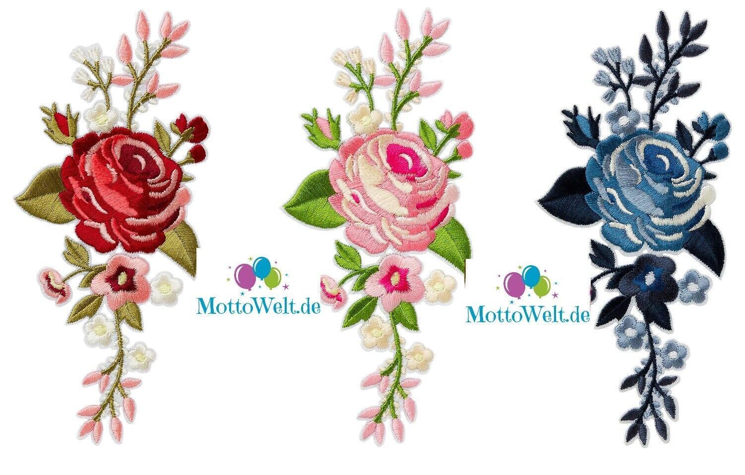 Blütenranke Applikation in blau, rosa, rot, Flicken Aufbügeln Aufnähen, Blume Rose