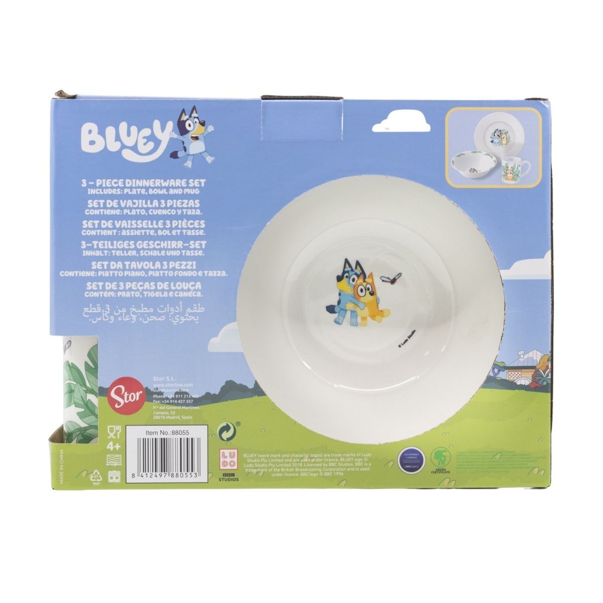 Bluey Kinder Geschirr Set Keramik 3 teilig Teller Schüssel Becher in Geschenkbox