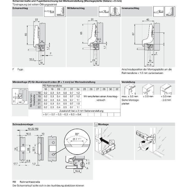 blum blum CLIP top Alurahmenscharnier 95° 9.5mm gekröpft mit Feder Schrauben