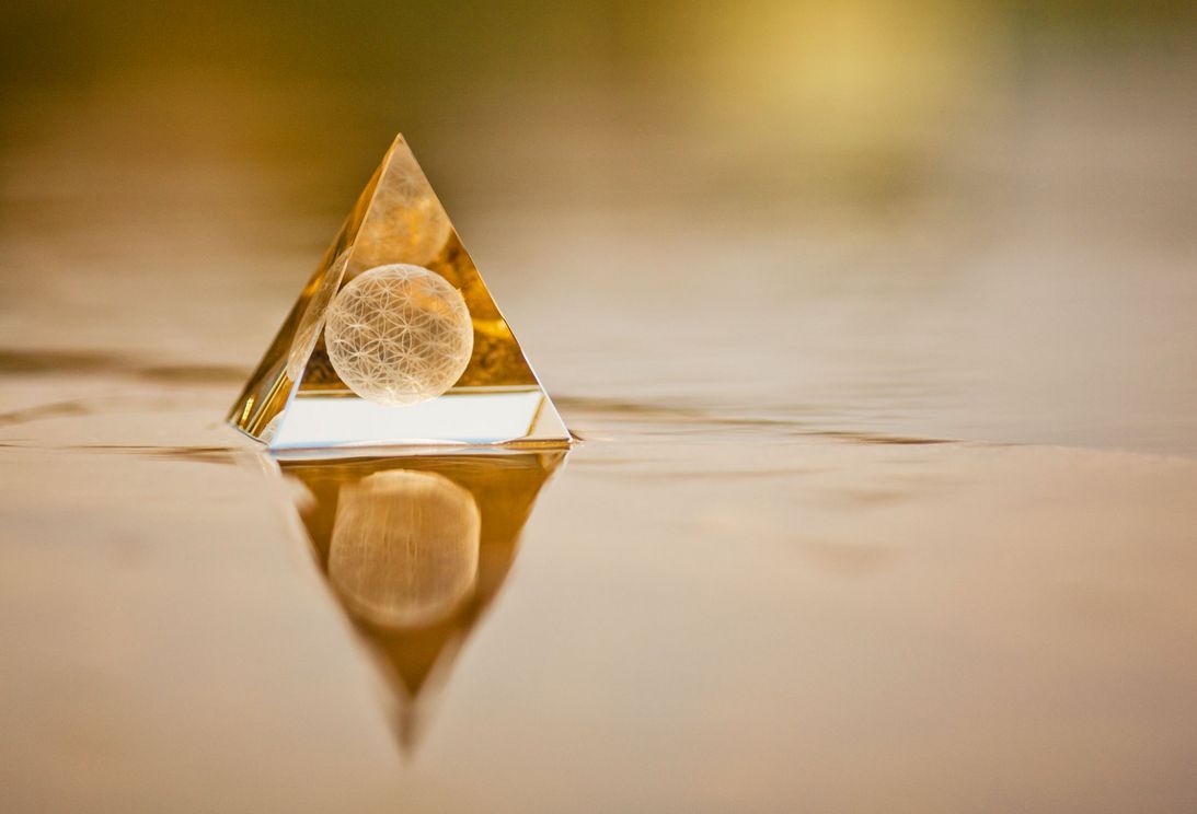Blume des Lebens Sphärenkristall, inkl. LED-Untersetzer, H: 10 cm, PY-888