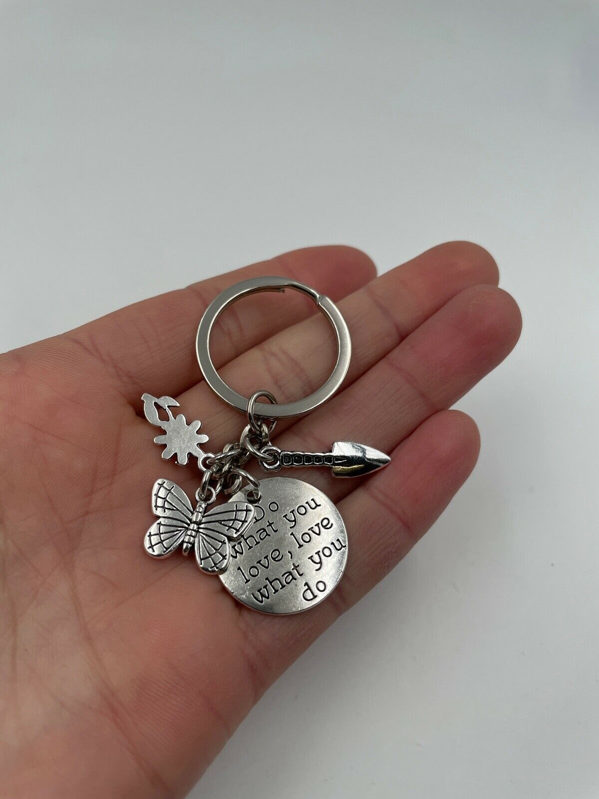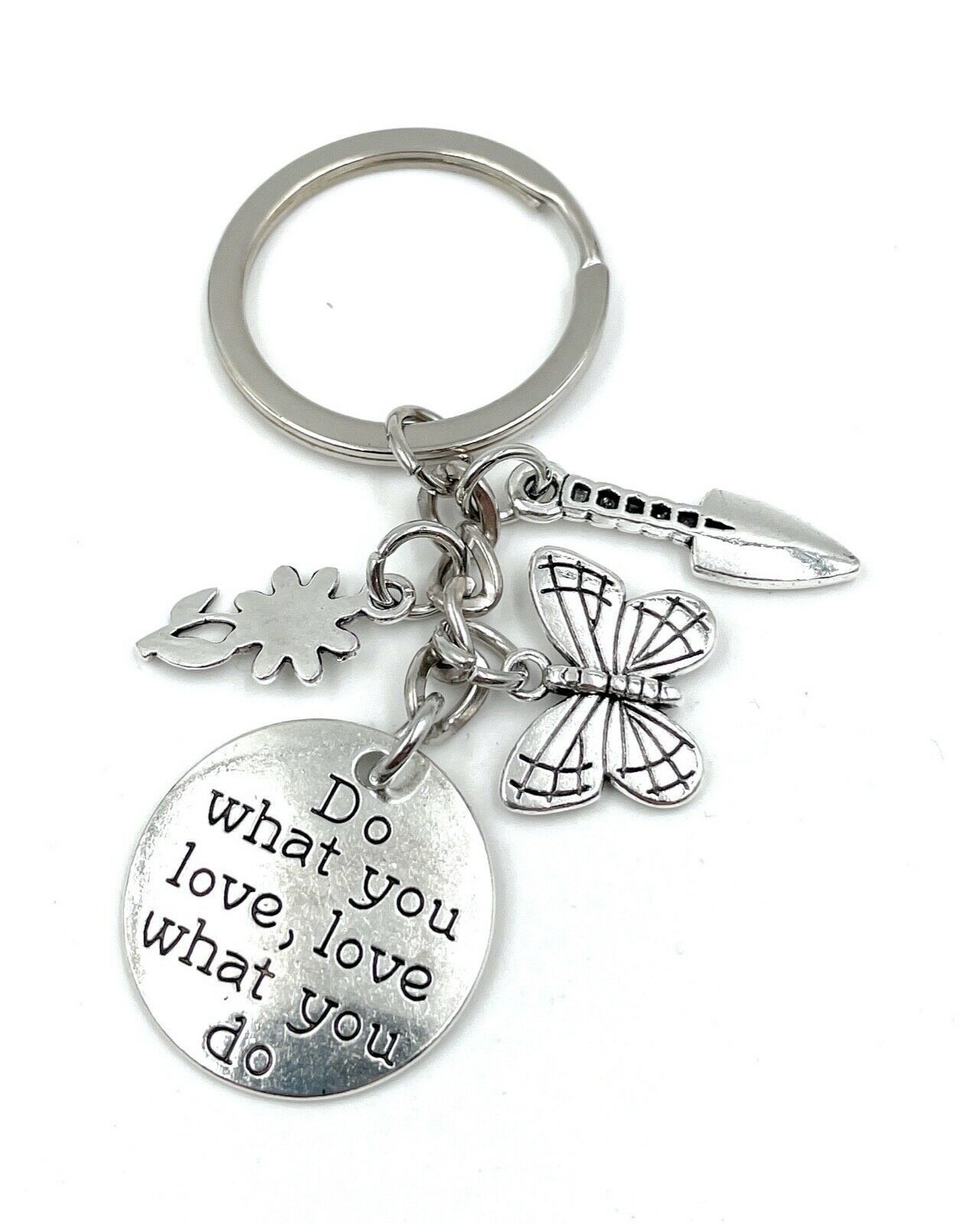 Blume Schmetterling Schaufel Schlüsselanhänger aus Metall Glücksbringer silber