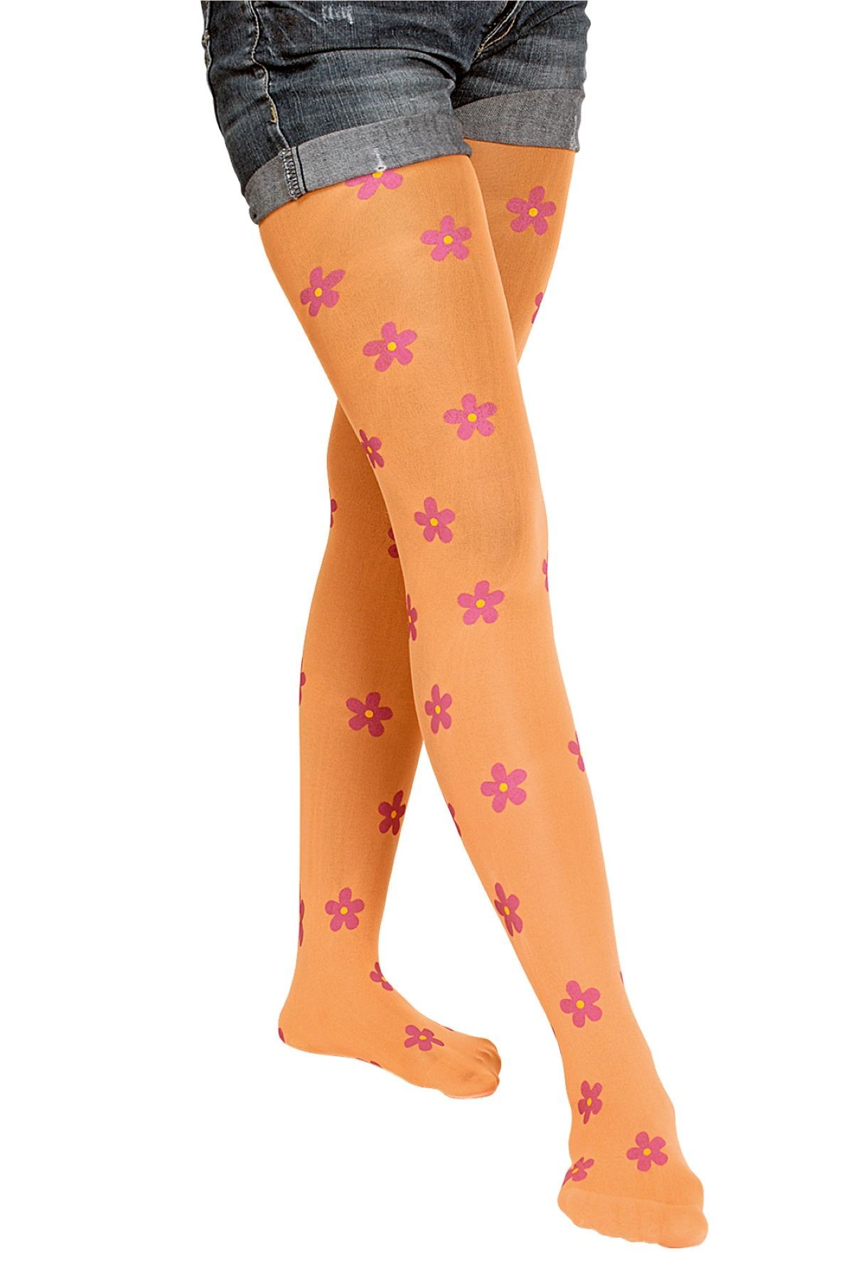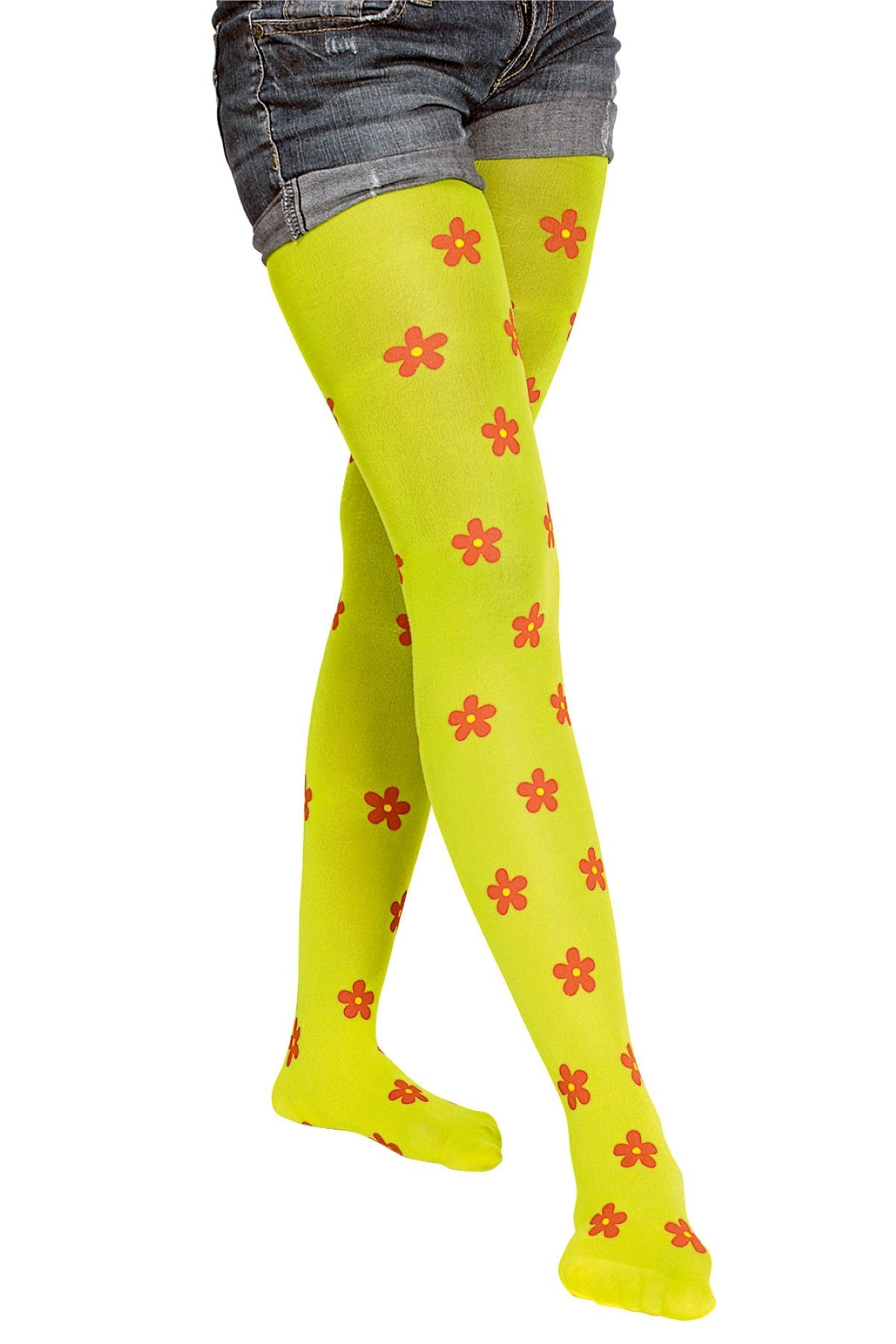 Körner Blumen Strumpfhose Hippie Flower Power grün orange Hippiestrumpfhose Karneval