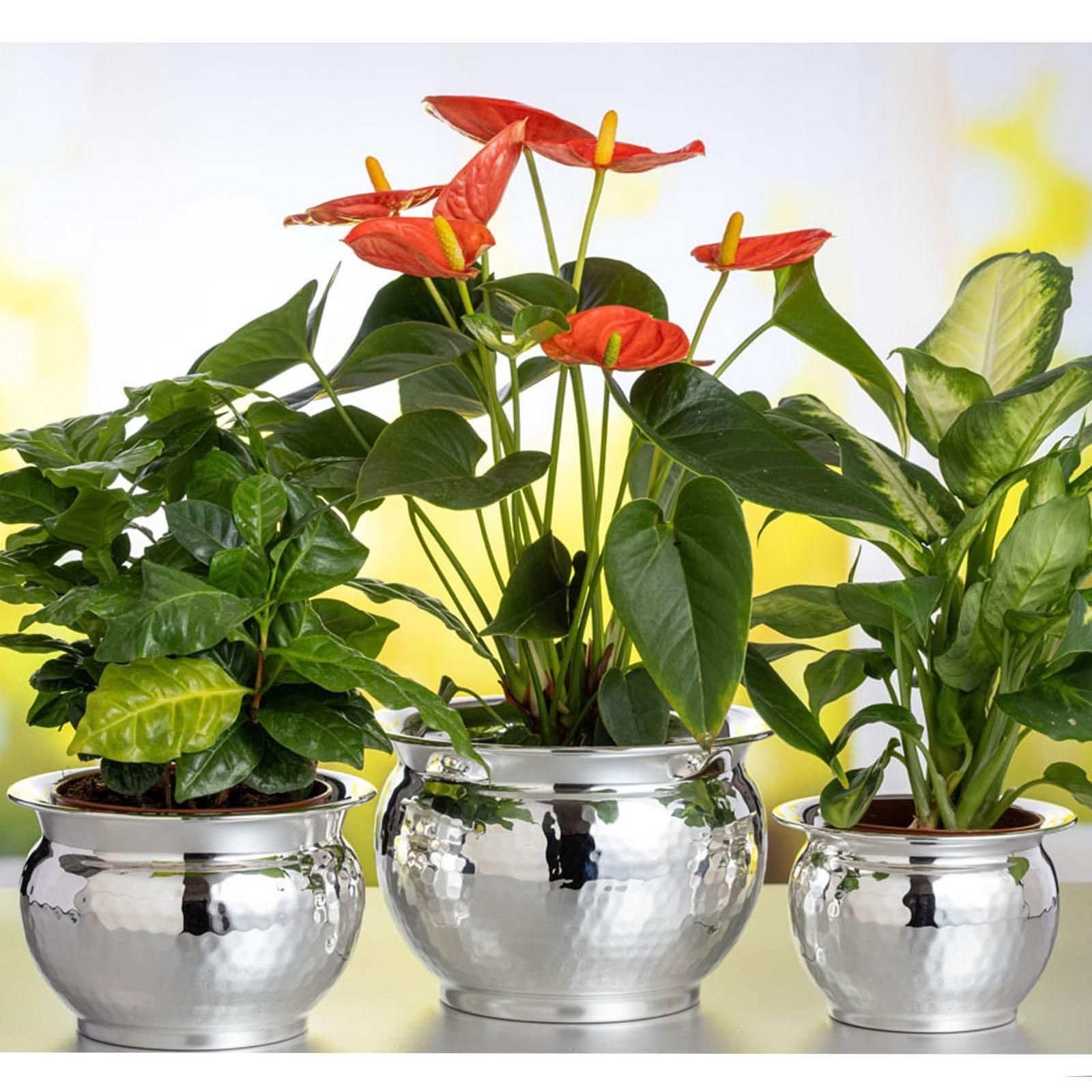 Blumen-Übertopf 12,5 x Ø 18 cm versilbert gehämmert Deko Pflanzentopf Blumentopf