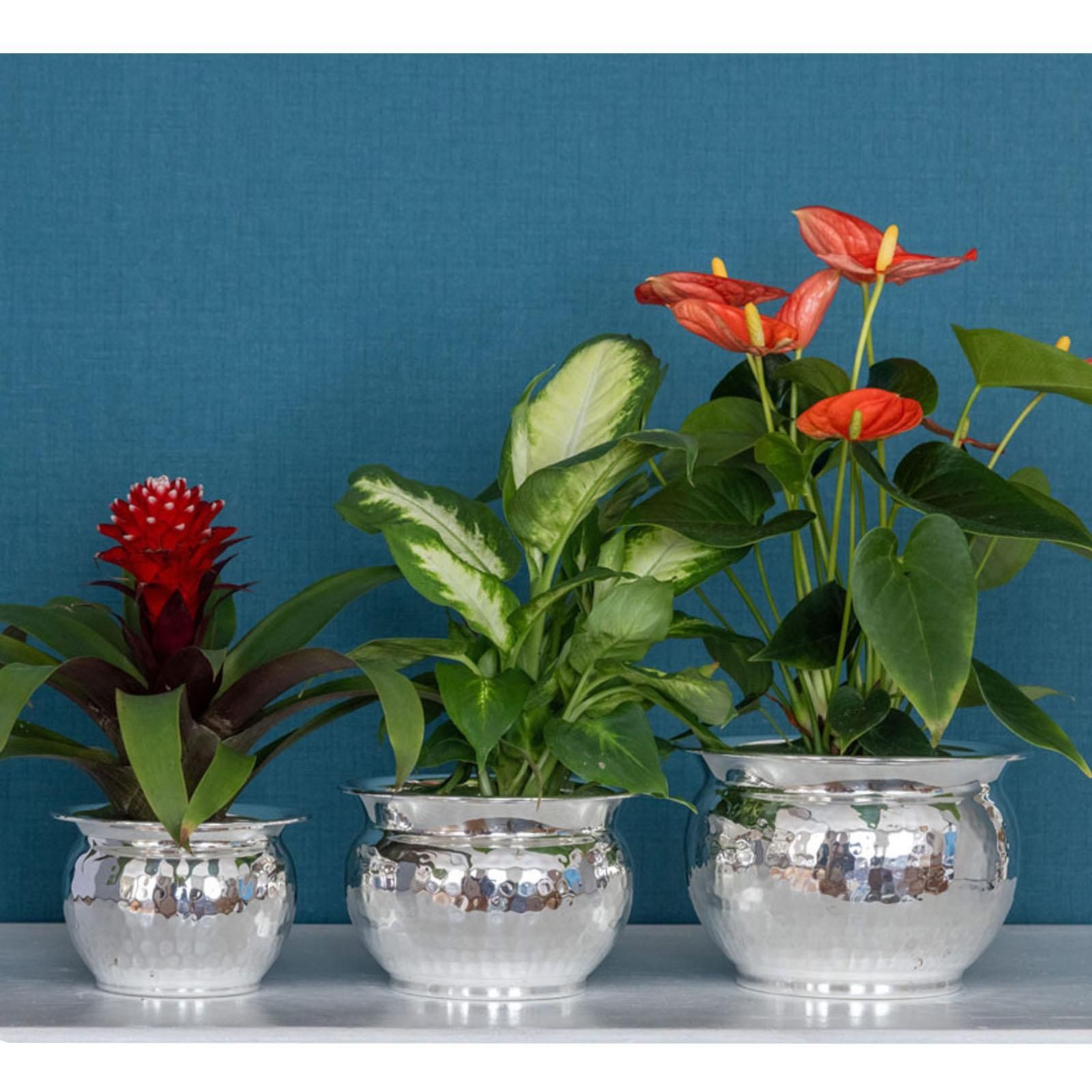 Blumen-Übertopf 8,5 x Ø 13 cm versilbert gehämmert Deko Pflanzentopf Blumentopf