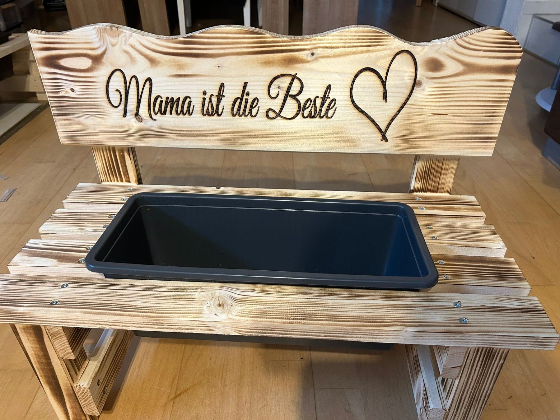 Blumenbank aus Holz mit Gravur Mama ist die Beste | Handgemacht & wetterfest