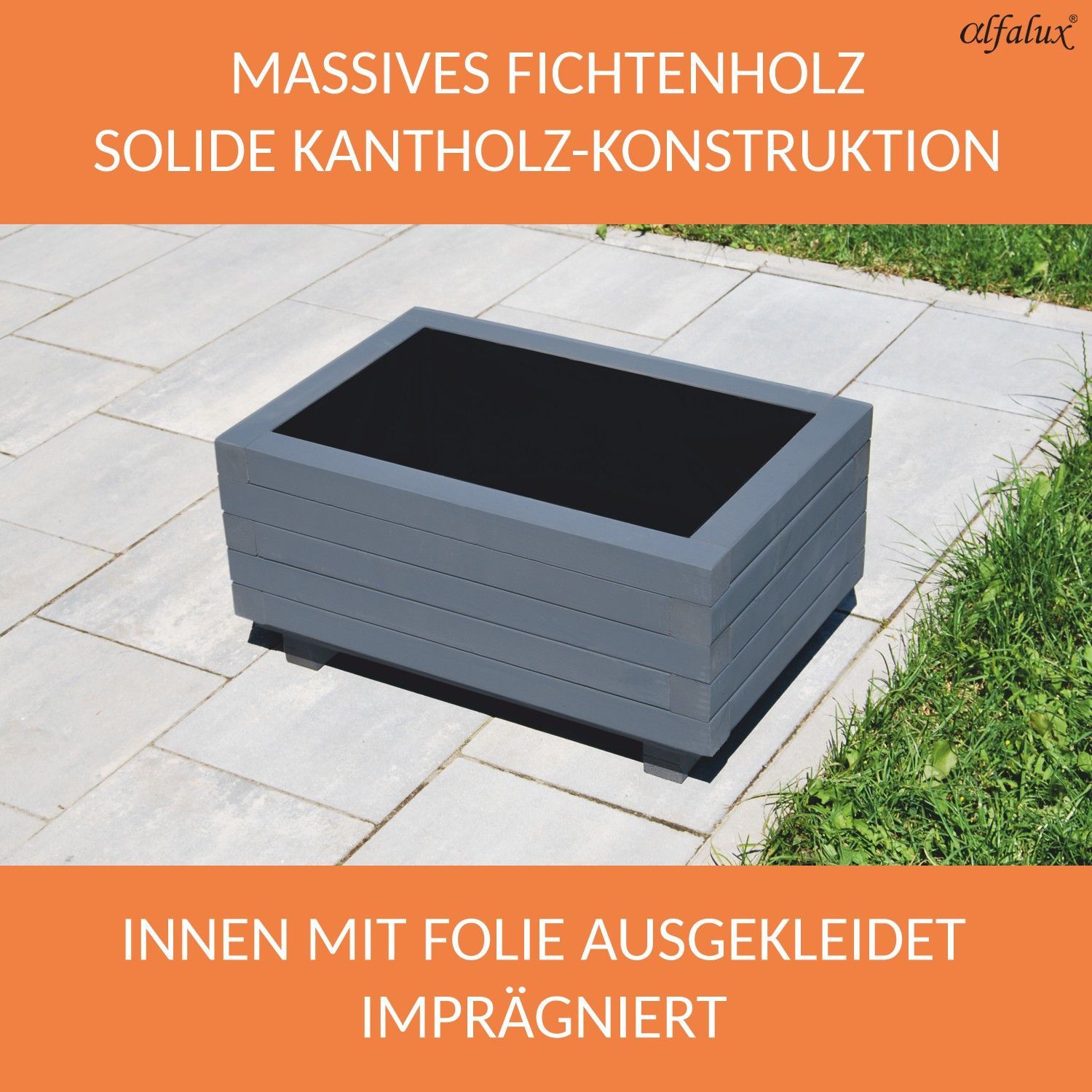 Blumenkasten GRAU 60x40x30 Wasserablauf Hochbeet aus Holz Pflanzkübel AB60KAN4030AN