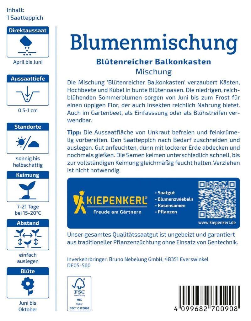 Kiepenkerl Blumenmischung Blütenreicher Balkonkasten, Saatteppich, reichblühende