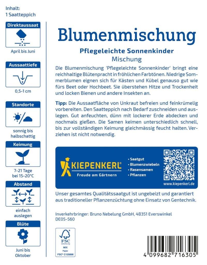 Kiepenkerl Blumenmischung Pflegeleichte Sonnenkinder, Saatteppich, Hitze- u
