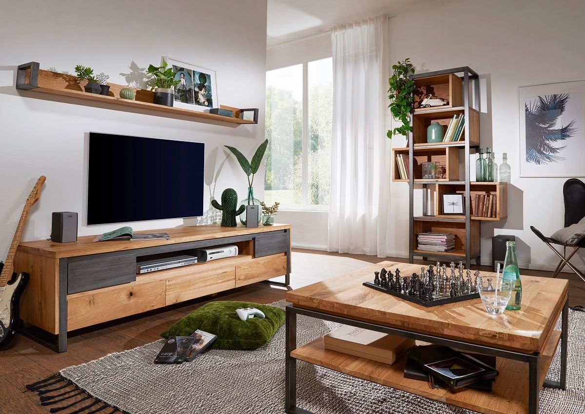 Blumensäule 30x90 cm 'Taipeh' Wildeiche & Metall gebürstet