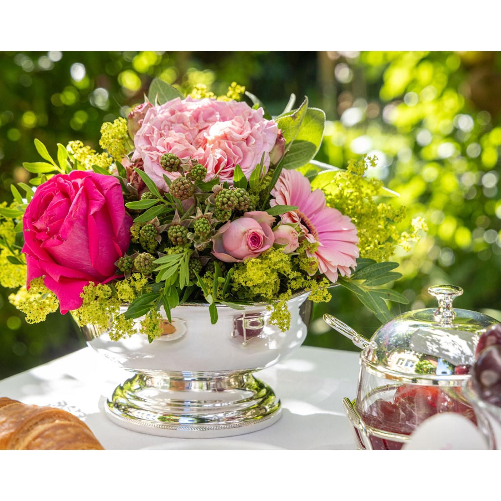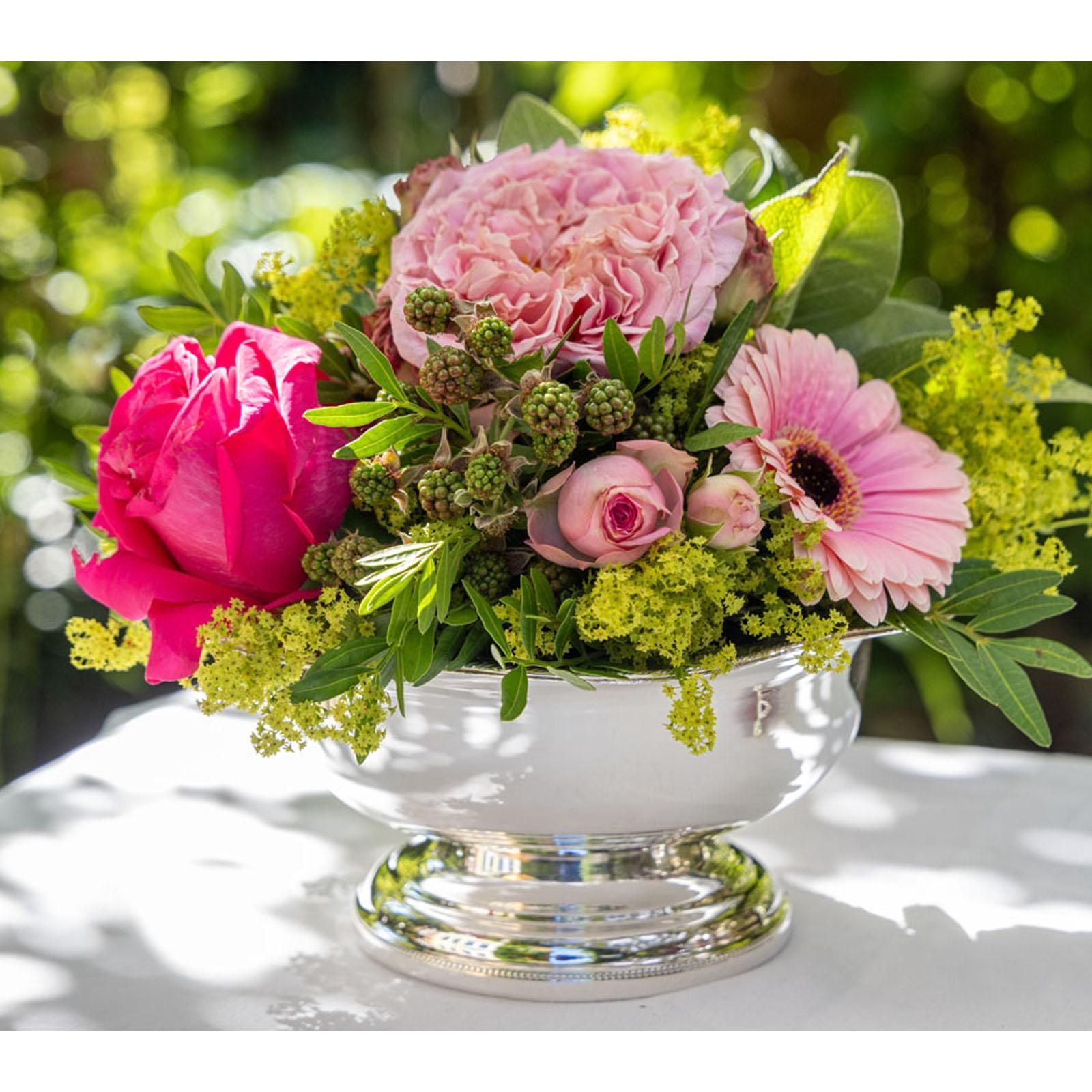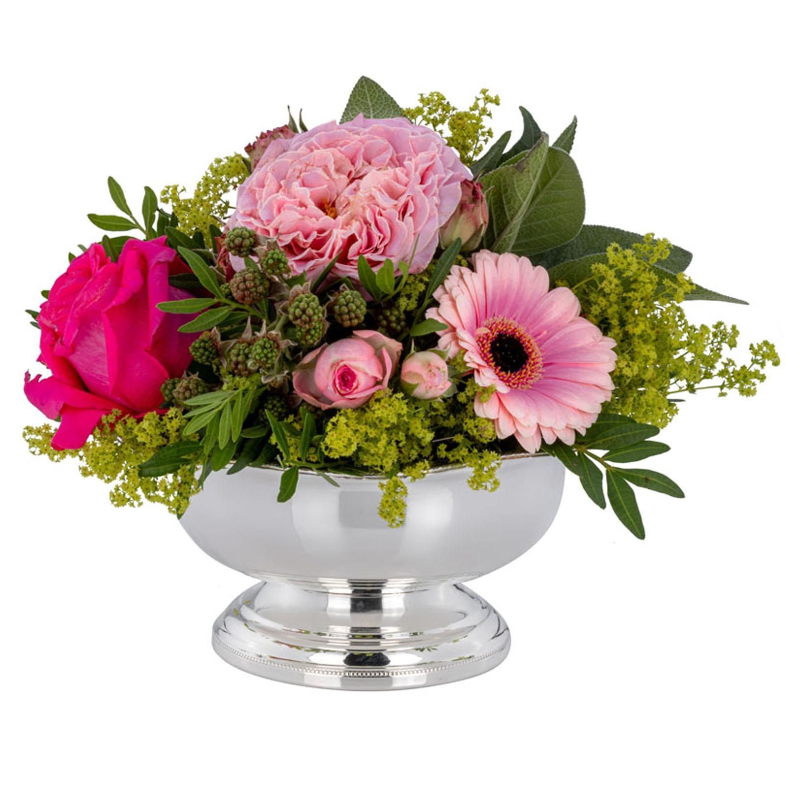 Blumenschale mit Steckgitter Ø 20 cm Gesteckschale versilbert Blumen Deko Schale