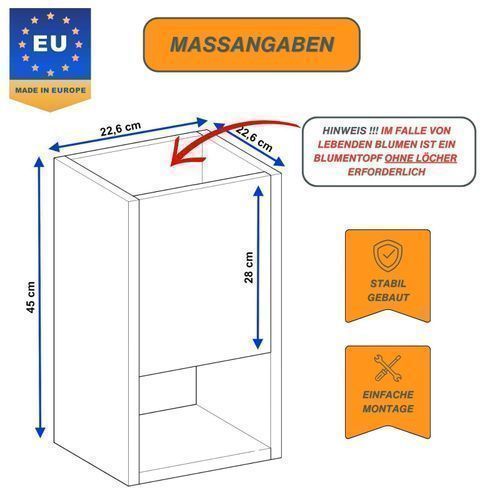 Blumenständer für Innenräume, Blumenkasten ohne Einsatz, Pflanzkasten 45x22,6x22,6cm