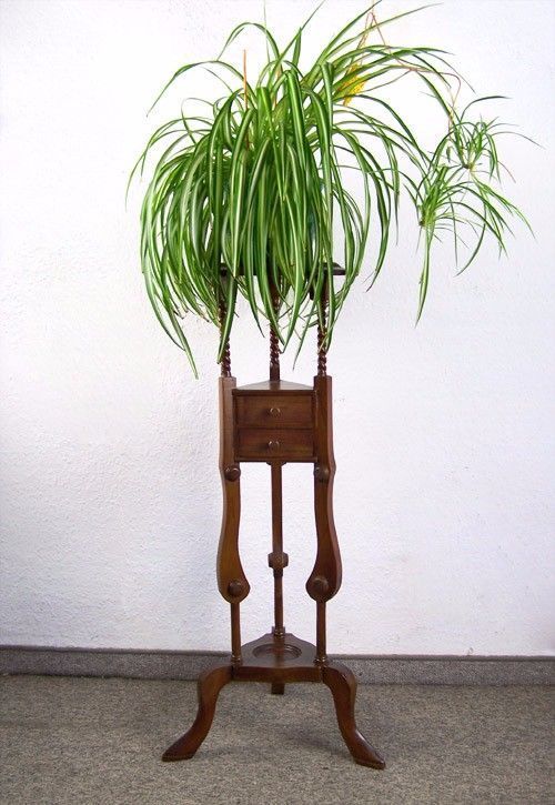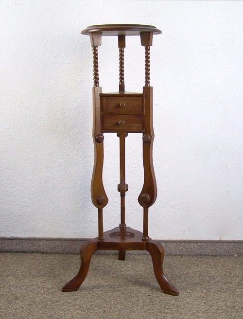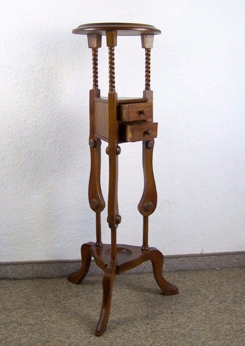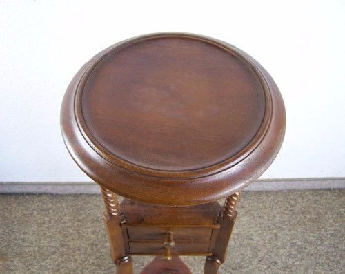 Dieses feine Möbelstück ist vielseitig verwendbar, z.B. als Blumenständer, Beistelltisch oder auch als Telefontisch. Viele Details wie die 2 kleinen Schübe, die säulenartigen Verbindungen und die geschwungenen Standbeine ergeben ein tolles Gesamtbild. Hergestellt wurde das Möbelstück aus Mahagoni-Ho