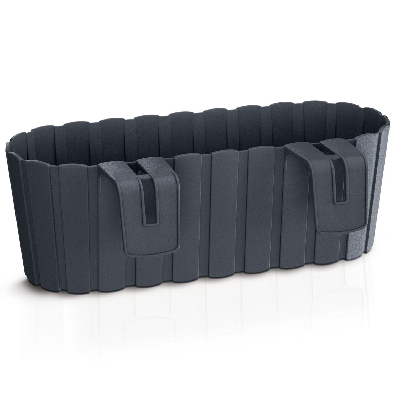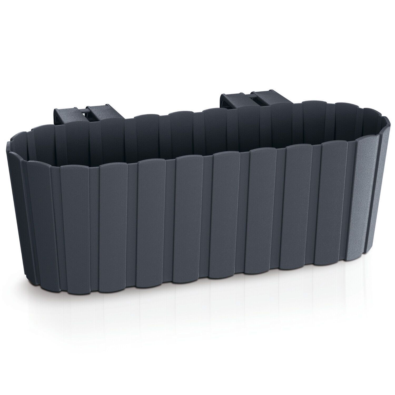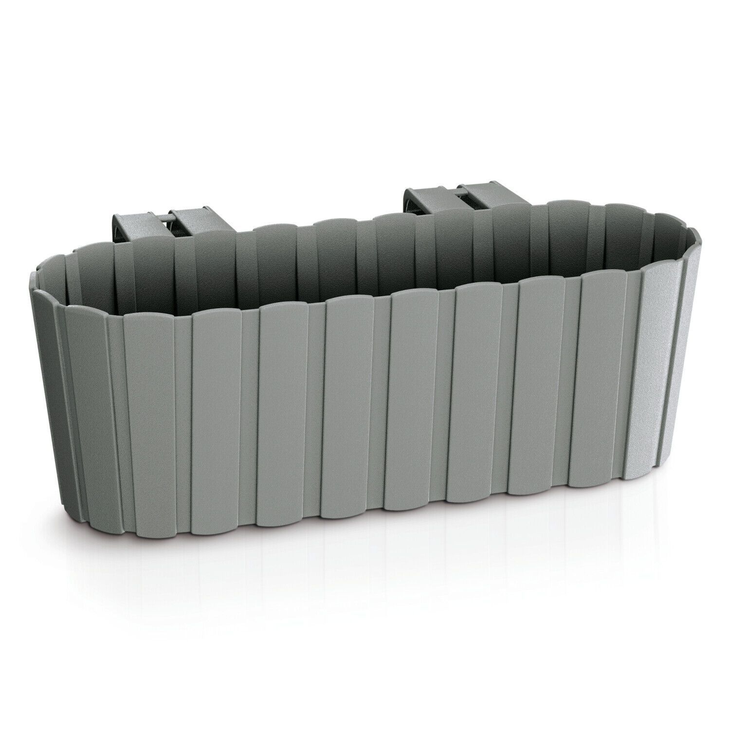 Blumenkasten Artikelnummer:66401 - Ovale Kästen zum Aufhängen an Balkongeländern - Mit einer Kapazität von 4,9L - Das Design ähnelt Behältern aus Holzlatten - Mit Griff zum Aufhänge n - Die Ideale Dekoration für Ihr Zuhause, Terrasse, Balkon oder Garten - Rustikaler Charakter - Geeignet für innen un