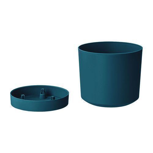 Blumentopf Blumenkübel mit Untersetzer Rund Blau 1,2 l