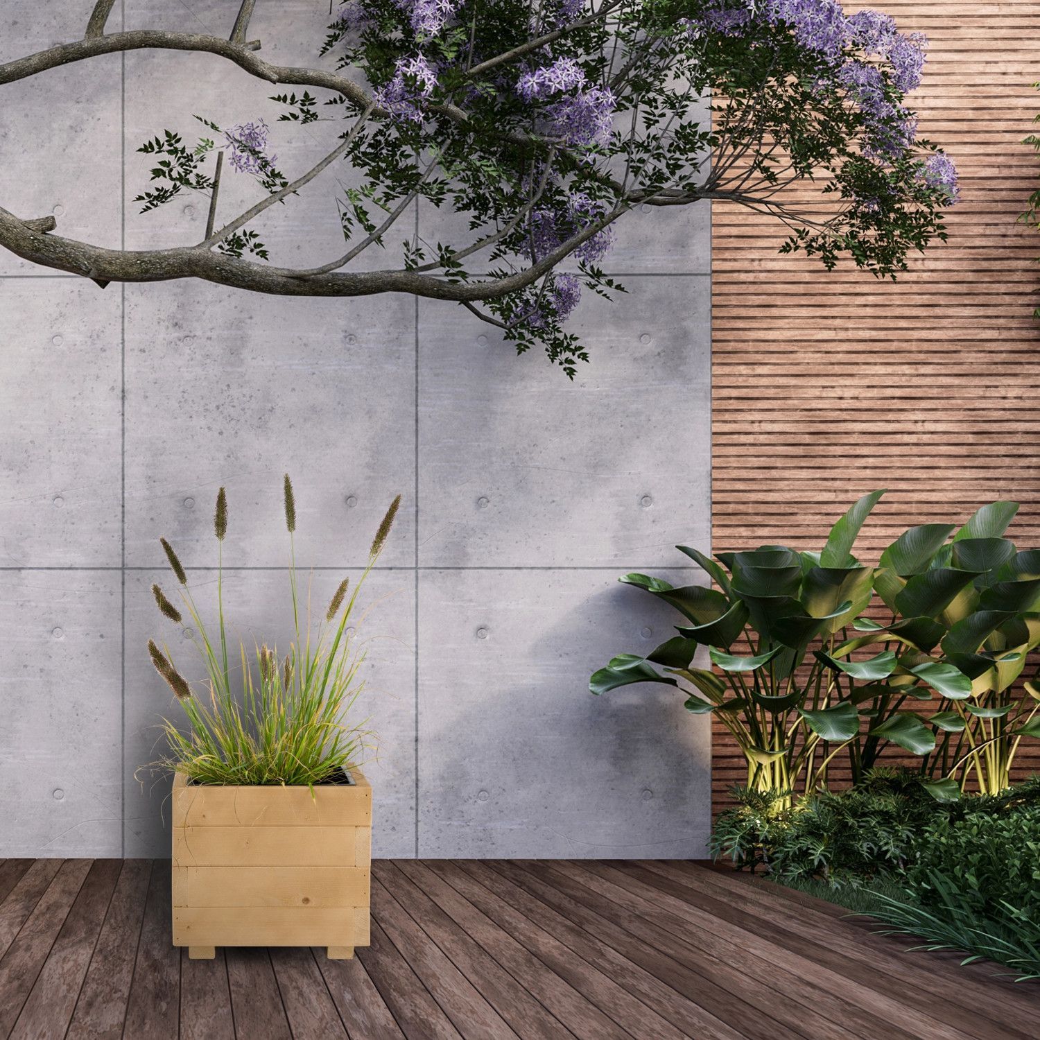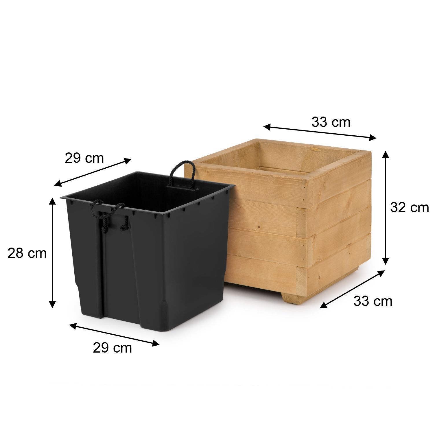 Blumentopf EICHE Pflanzkübel aus Holz Blumenkasten Kunststoffeinsätzen 33KAN3332EI