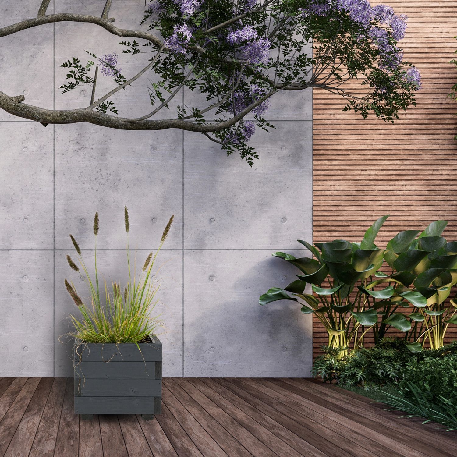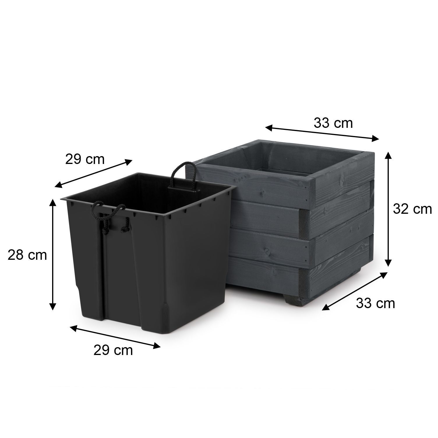 Blumentopf GRAU Pflanzkübel aus Holz Blumenkasten Kunststoffeinsätzen 33KAN3332AN