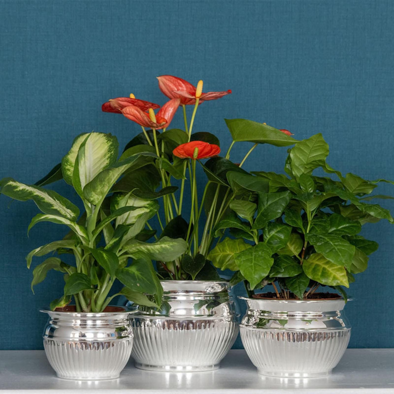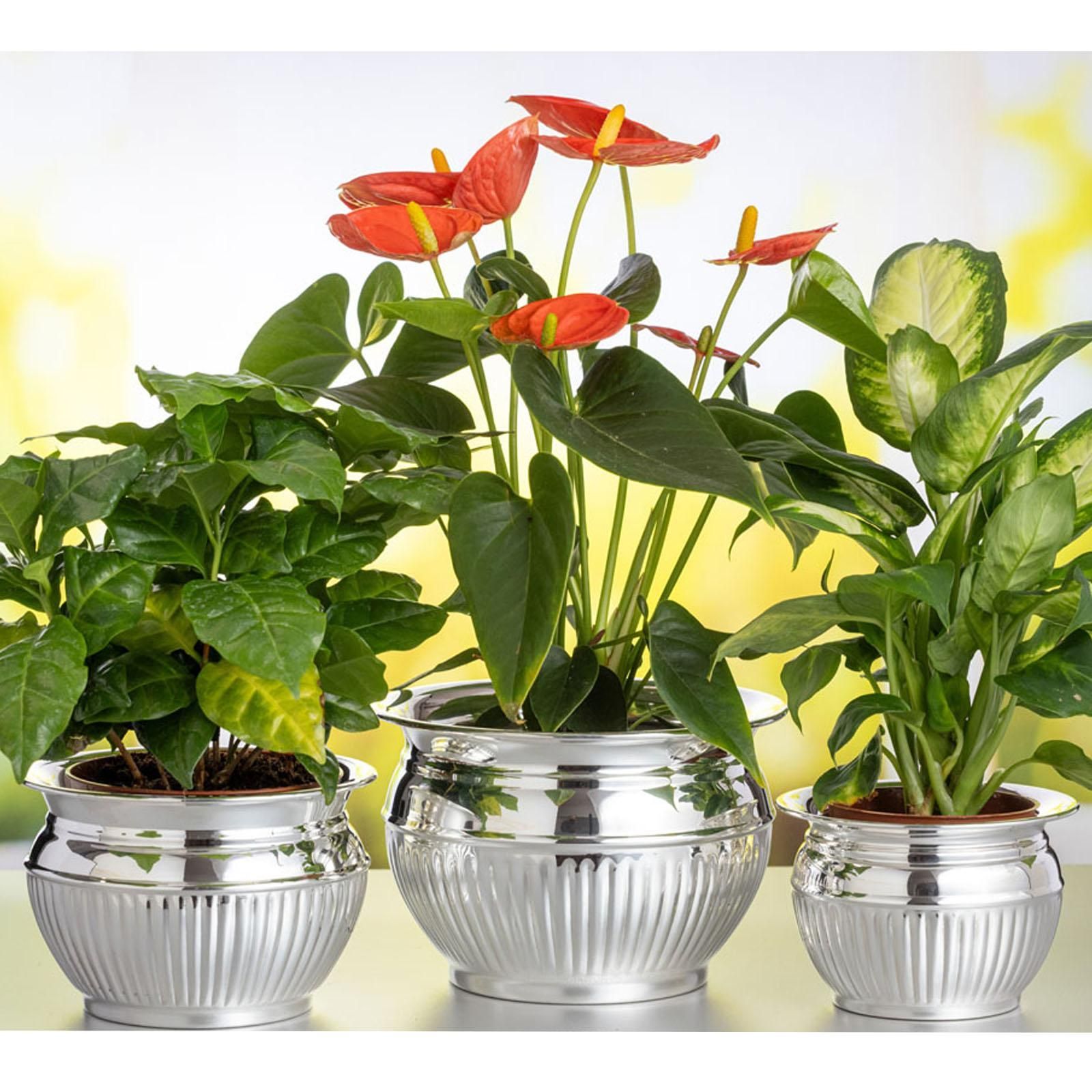 Blumenübertopf 10,5xØ 15,5 cm Übertopf versilberter Deko Pflanzentopf Blumentopf