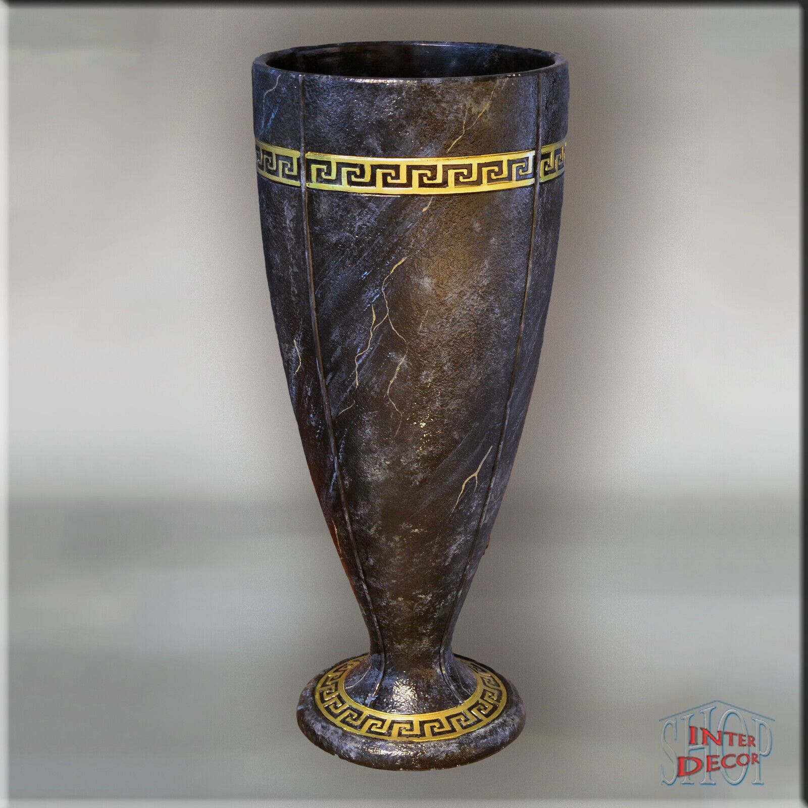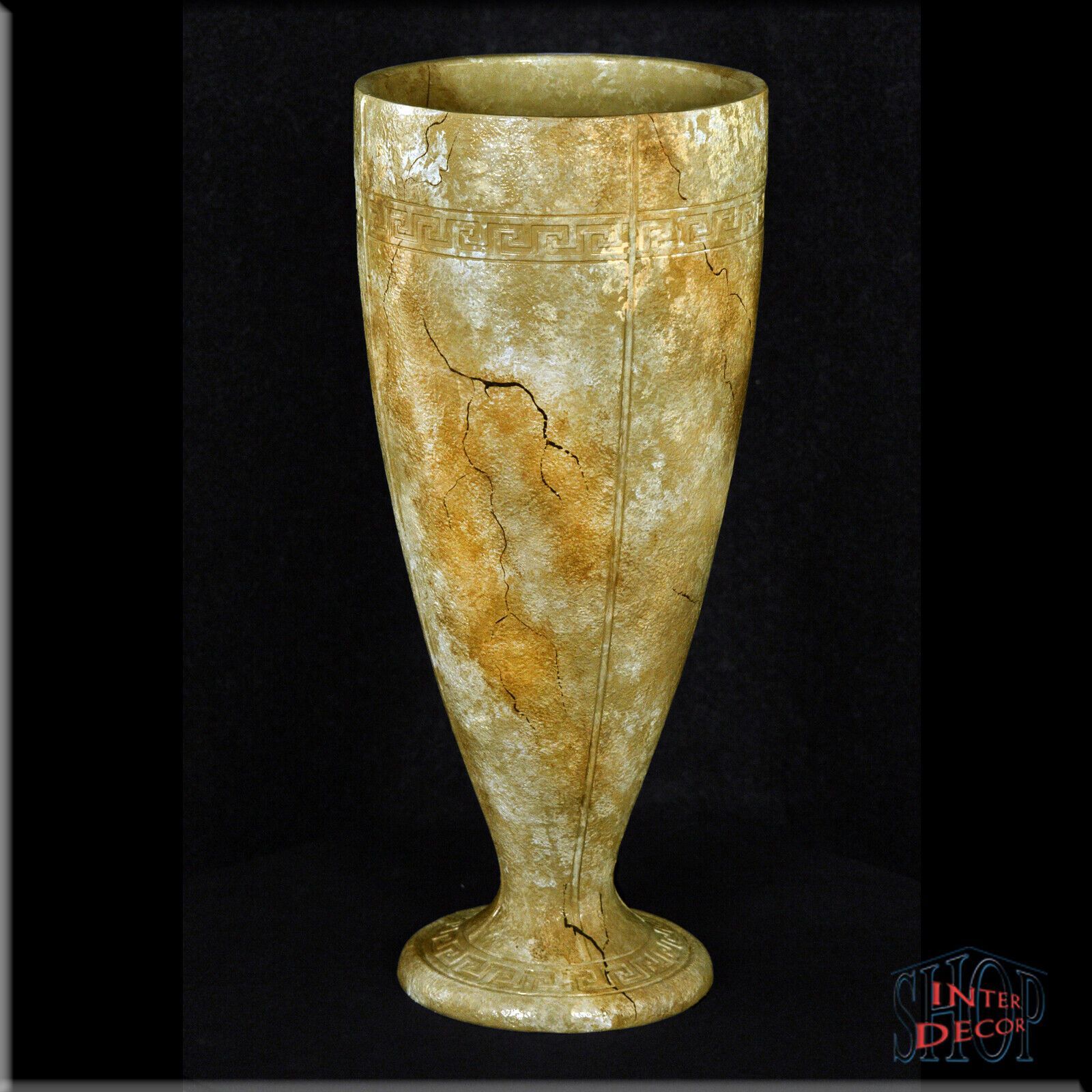 Blumenvase Vase Bodenvase Griechische Mäander Blumentopf Marmor Optik Kunstharz