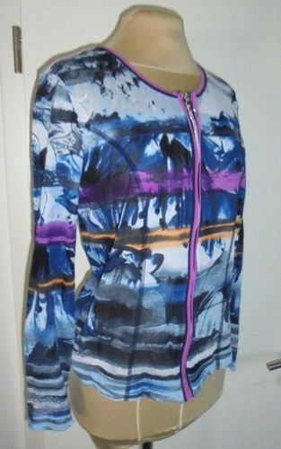 wenig getragen mehrfarbig gemustert RV Leiste Meshartiger transparenter Stoff 100 % Baumwolle siehe Bild Länge ab Schulter: 57 cm Brustweite unter den Achseln gemessen: 47 cm Armlänge ab Schulter: 56 cm Zustand gut erhalten Versand: 2,80€ Der Verkauf folgt unter Ausschluss jeglicher Gewährleistung u