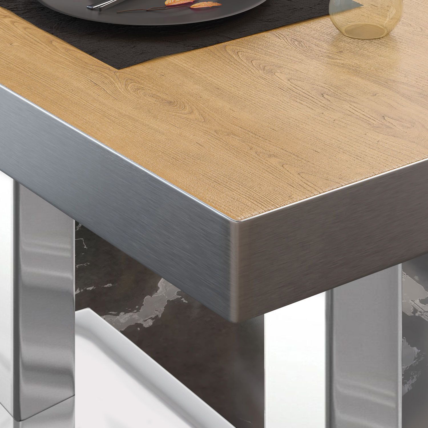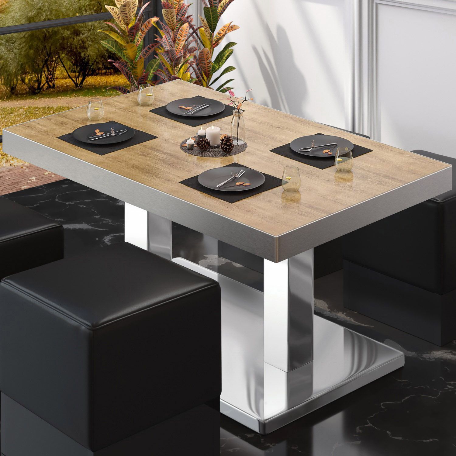 BM | Bistro Loungetisch | B: : 110 x 60 x 41 cm | Eiche / Edelstahl | Klappbar | Bi