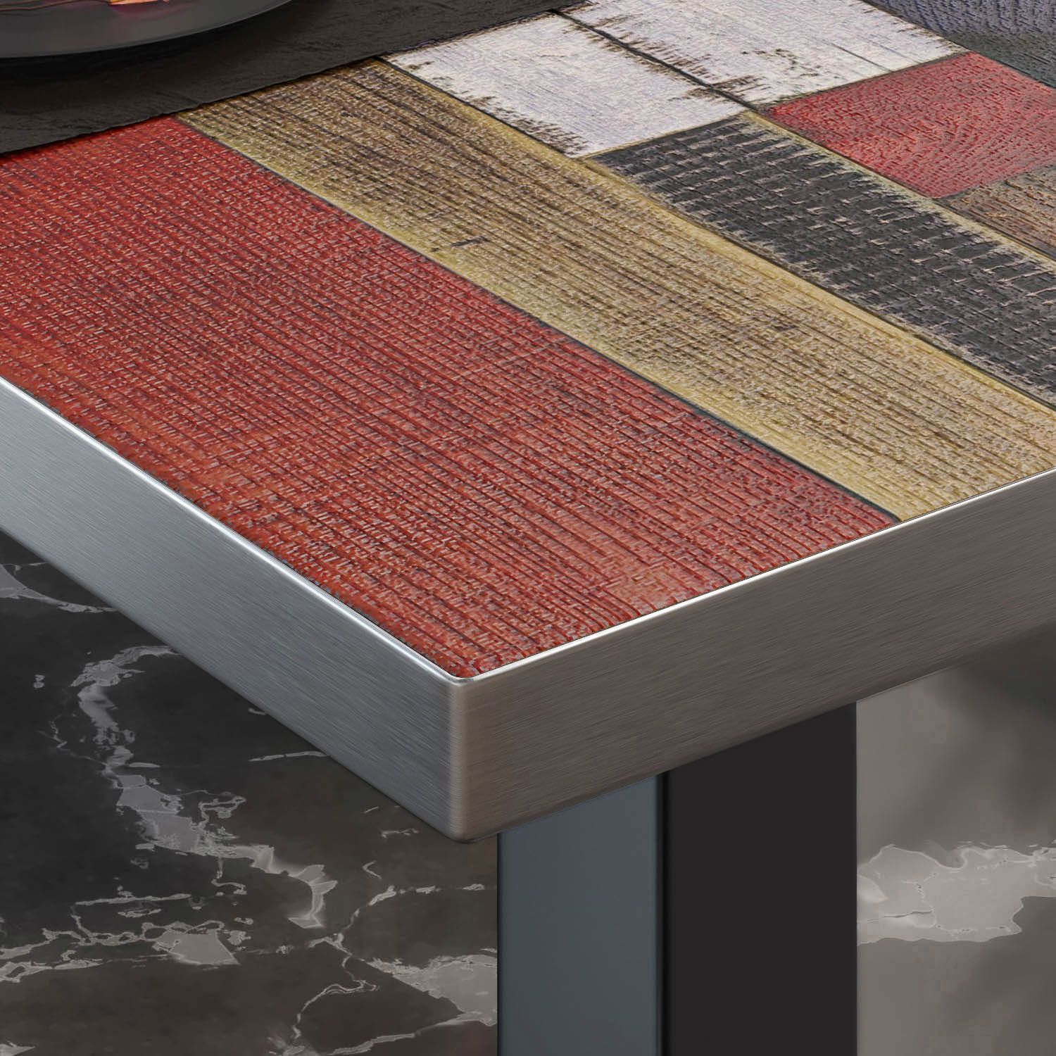 • BM Bistrotisch | 50x50xH77cm | Klappbar | Vintage Bunt/ Edelstahl | Bistro Tisch Esst