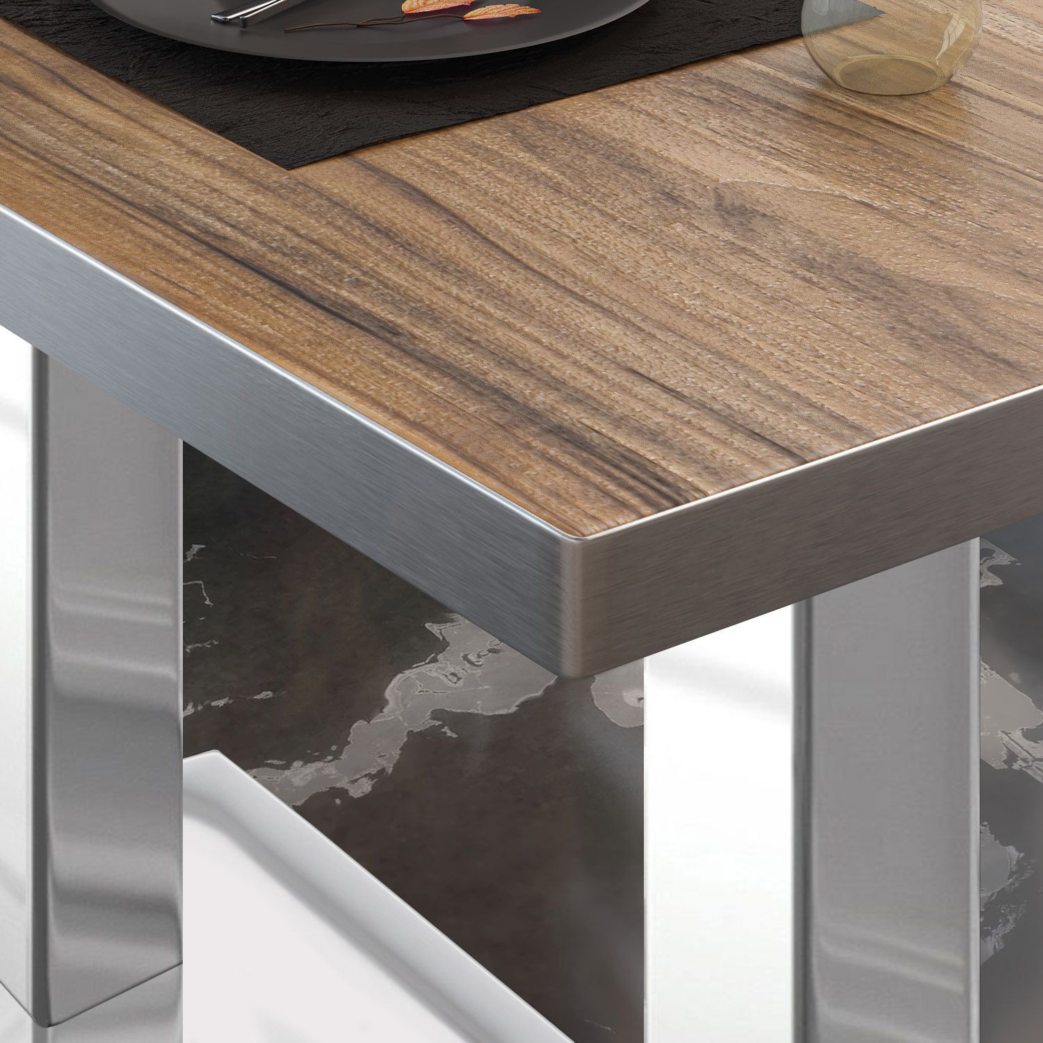 BM | Bistrotisch | B: : 110 x 60 x 77 cm | Sheesham / Edelstahl | Klappbar | Rechte