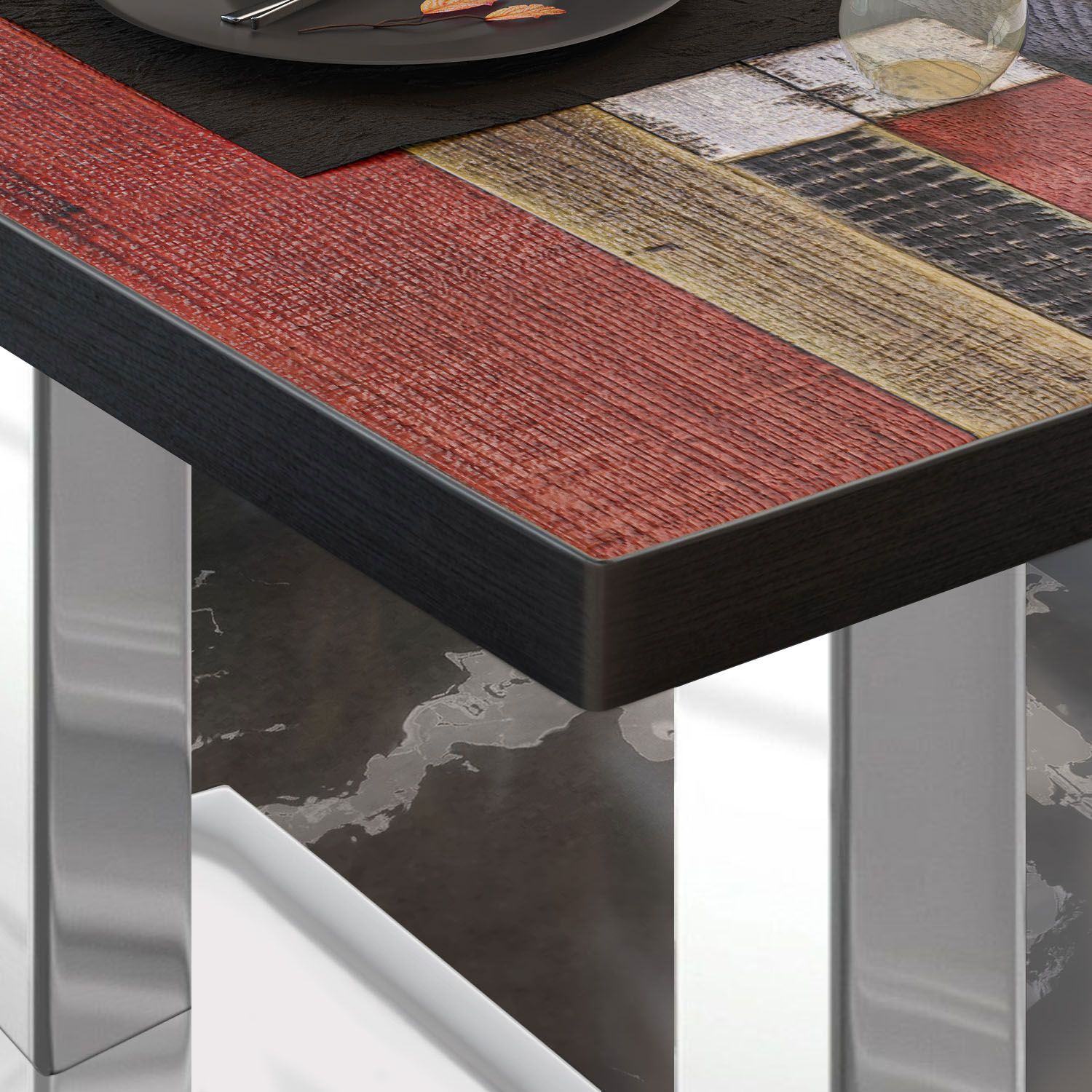 BM | Bistrotisch | B: : 110 x 60 x 77 cm | Vintage Bunt / Edelstahl | Klappbar | Re