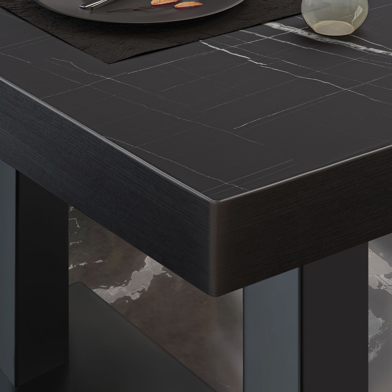 BM | Bistrotisch | B: : 120 x 70 x 77 cm | Schwarz Marmor / Schwarz | Klappbar | Re