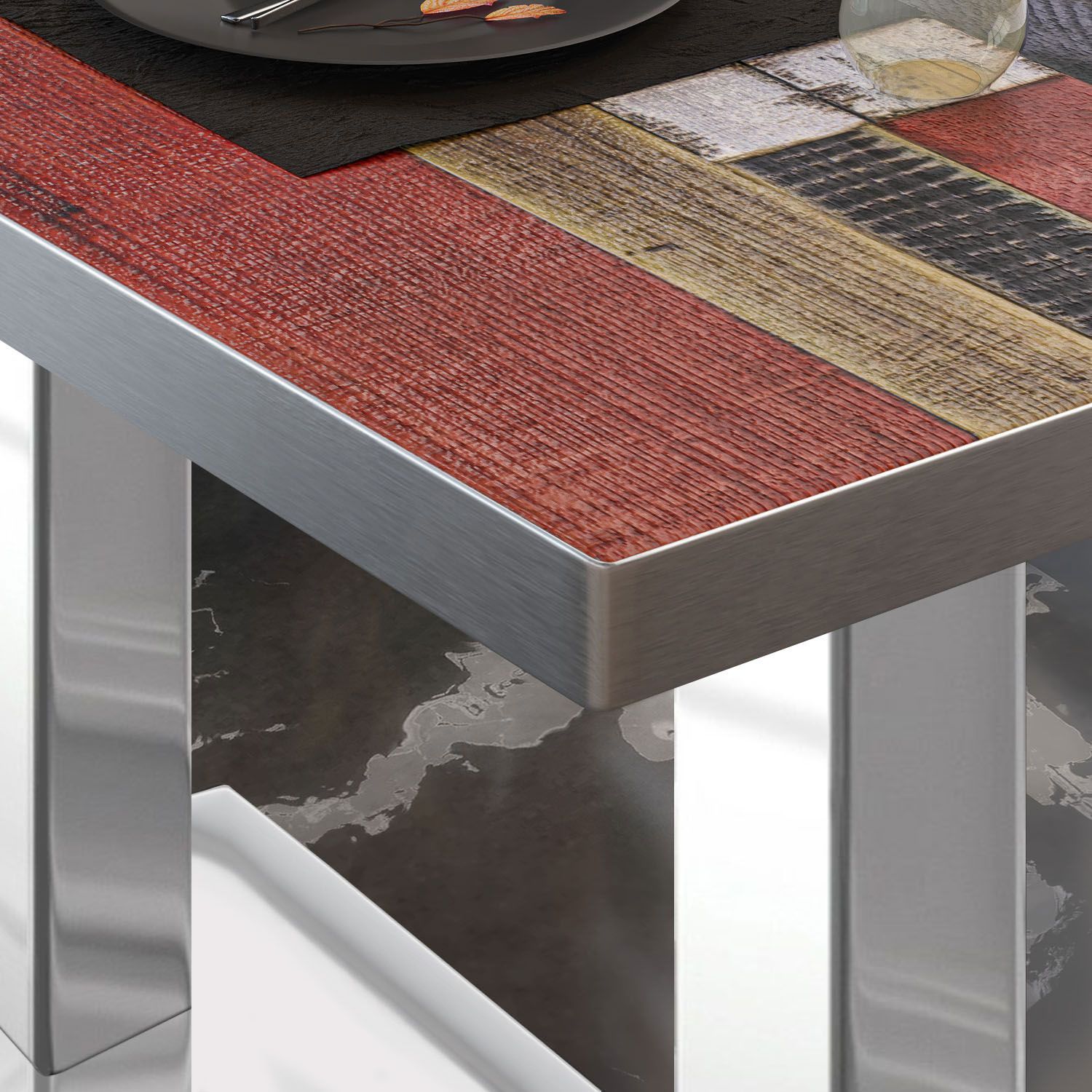 BM | Bistrotisch | B: : 130 x 80 x 75 cm | Vintage Bunt / Edelstahl | Rechteckig |