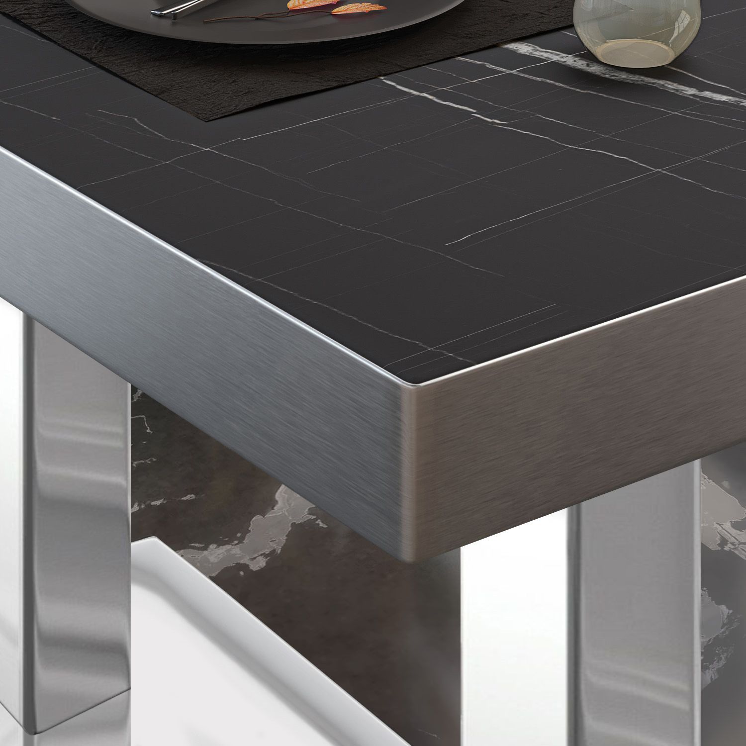 BM | Bistrotisch | B: : 130 x 80 x 77 cm | Schwarz Marmor / Edelstahl | Rechteckig