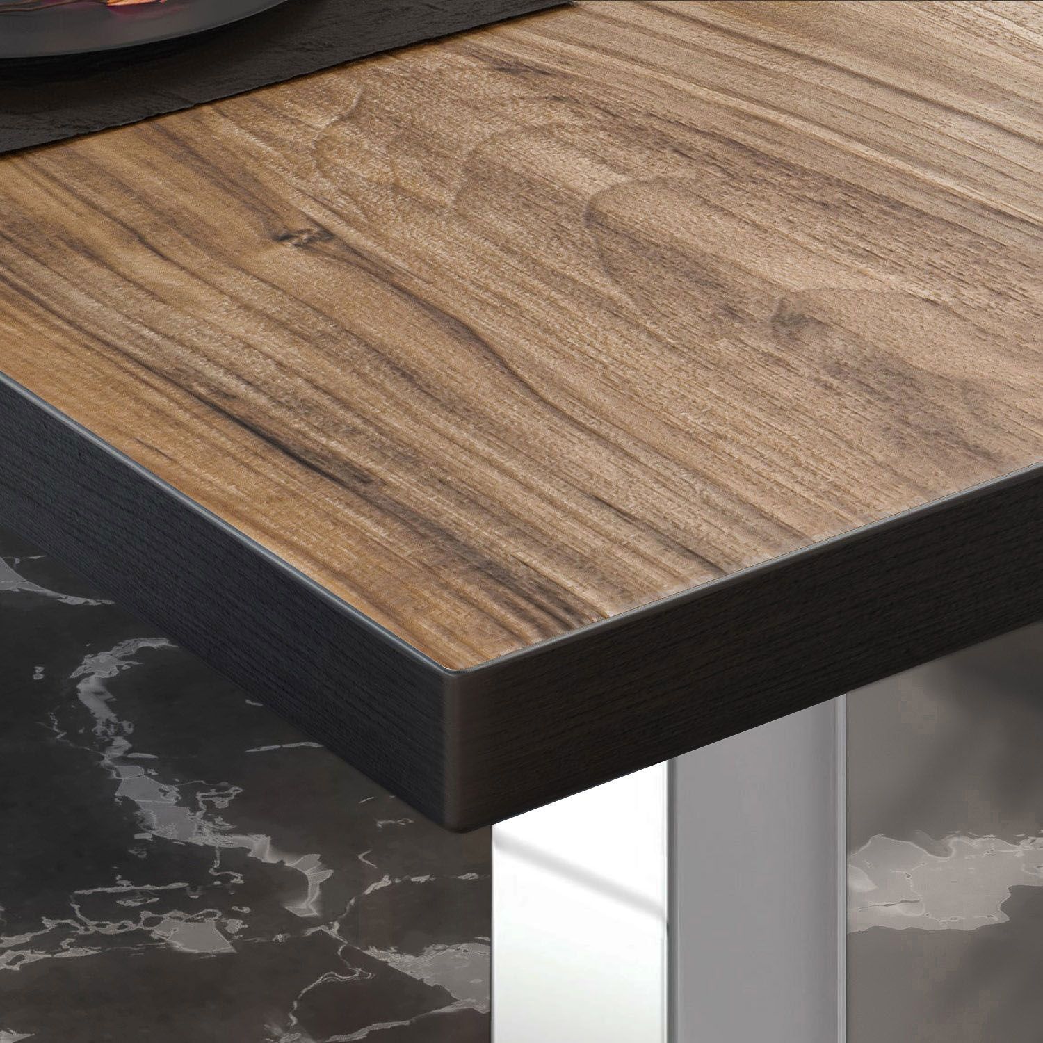 BM | Bistrotisch | B: : 60 x 60 x 75 cm | Sheesham / Edelstahl | Quadratisch | Schw
