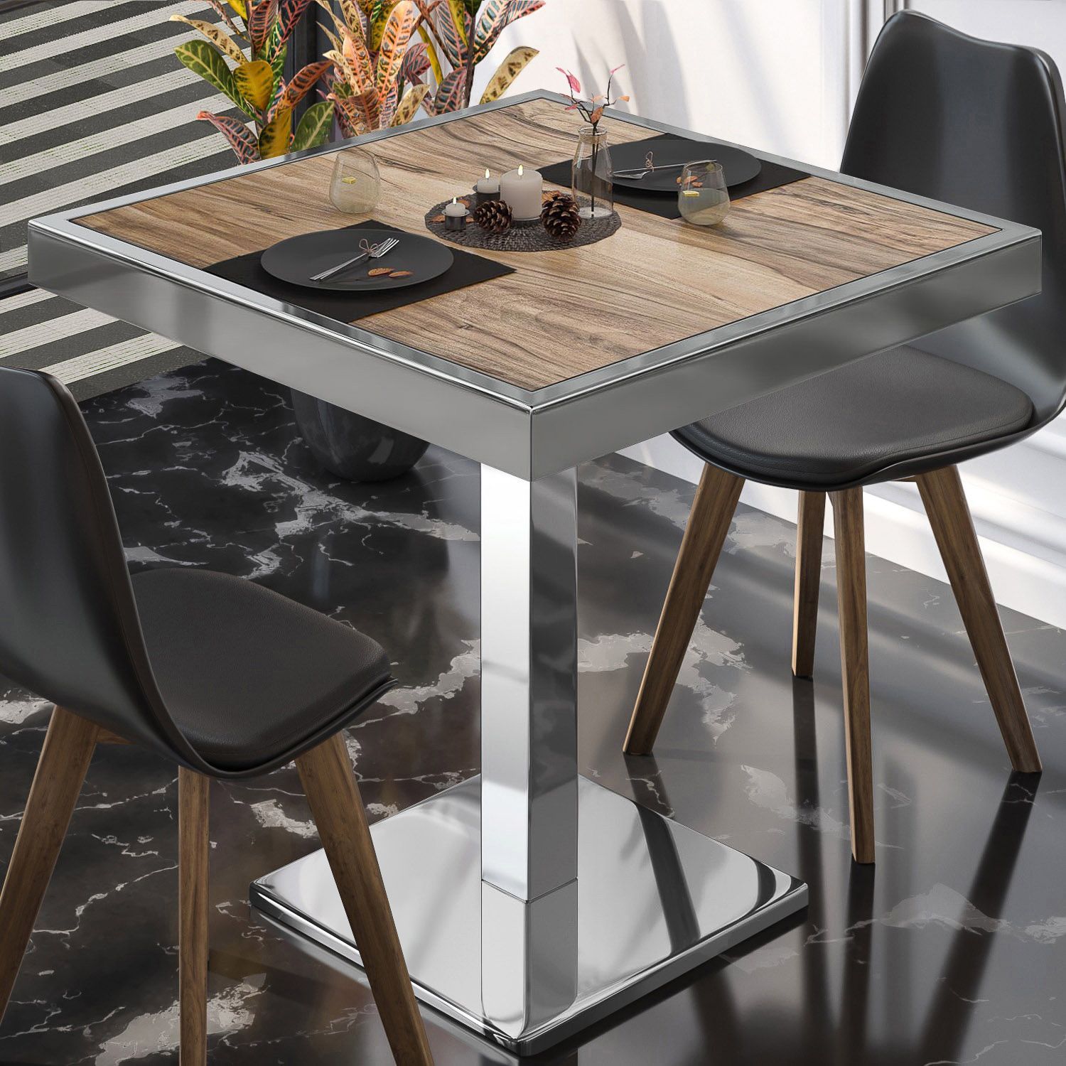 BM | Bistrotisch | B: : 60 x 60 x 77 cm | Sheesham / Edelstahl | Klappbar | Quadrat