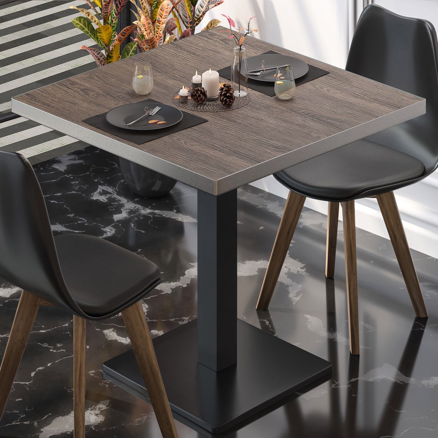 BM | Bistrotisch | B: : 60 x 60 x 77 cm | Wenge / Schwarz | Klappbar | Quadratisch
